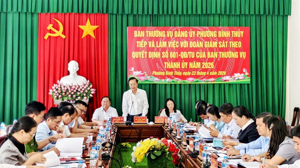 Đoàn Giám sát số 601 của Ban Thường vụ Thành ủy làm việc tại phường Bình Thủy