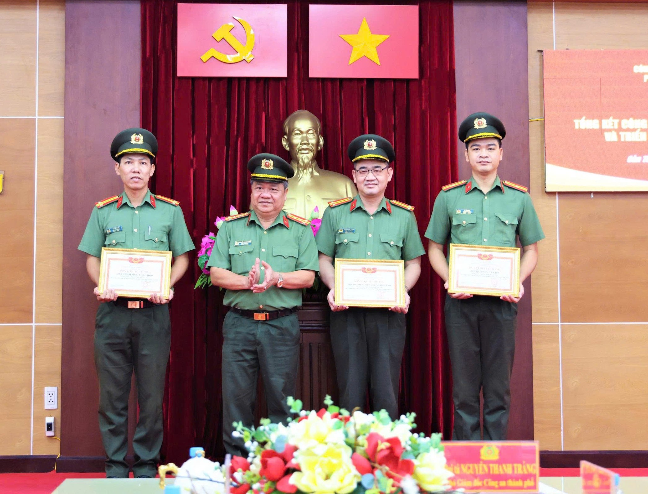 Đại tá Nguyễn Thanh Tràng, Thành ủy viên, Phó Bí thư Đảng ủy, Phó Giám đốc Công an thành phố trao danh hiệu đơn vị quyết thắng cho các đơn vị thuộc Phòng Tổ chức cán bộ.