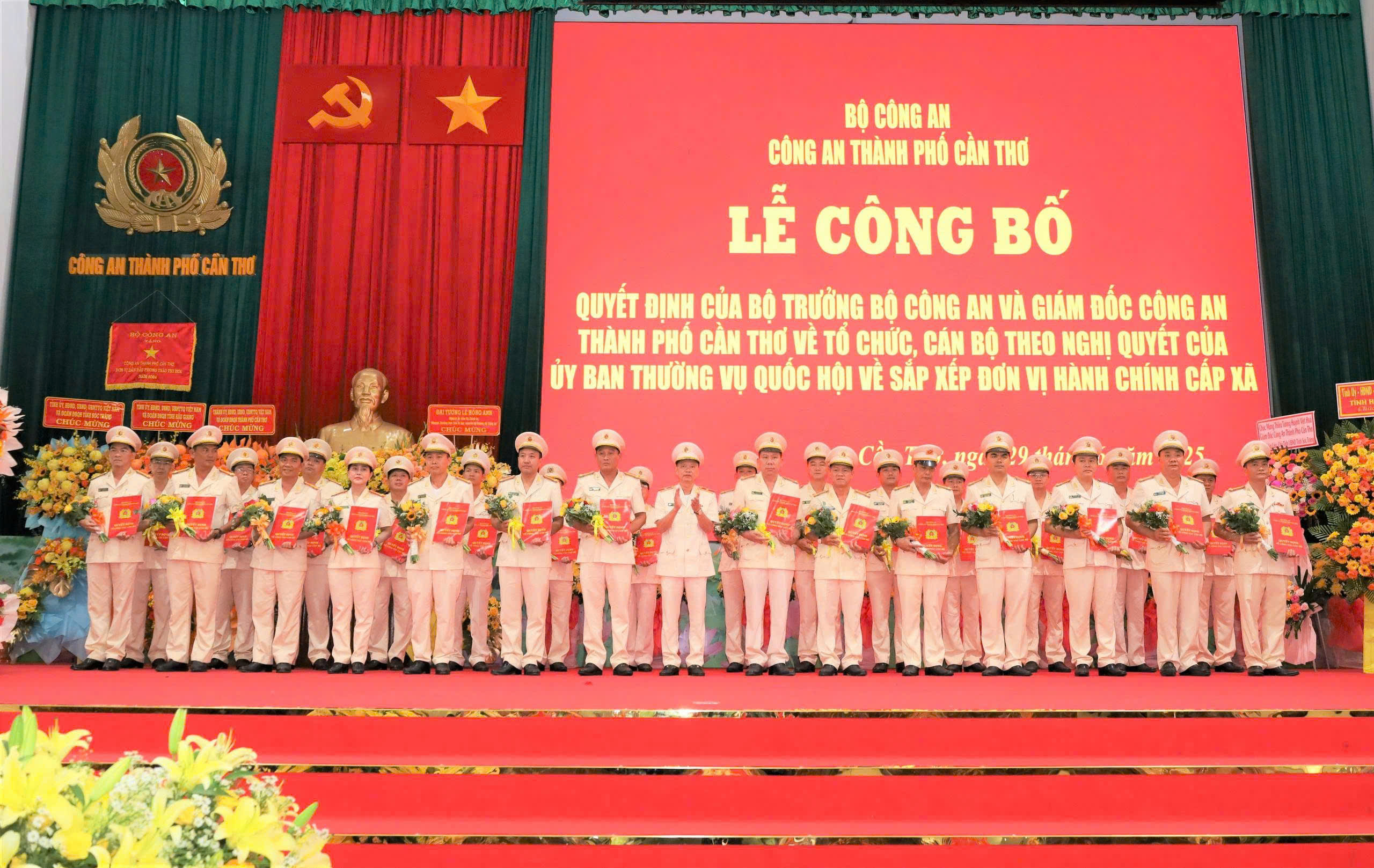 Công an thành phố Cần Thơ công bố quyết định về công tác tổ chức bộ máy và công tác cán bộ tháng 7/2025.