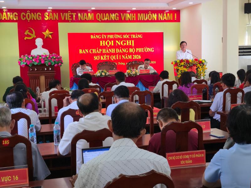 Sáng 6/4, Ban Chấp hành Đảng bộ phường Sóc Trăng sơ kết hoạt động Quí I năm 2026. Đồng chí Dương Sà Kha, Ủy viên Ban thường vụ Thành ủy, Bí thư Đảng ủy, Chủ tịch HĐND phường chủ trì hội nghị. Đến dự có các đồng chí: Lâm Anh Khoa, Phó Ban Tổ chức Thành ủy, ông Cao Thiện Hải, Phó Ban thường trực Ban Nội chính Thành ủy.