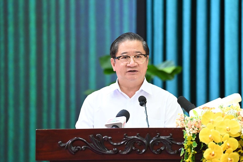 Đồng chí Trần Việt Trường, Phó Bí thư Thành ủy, Chủ tịch UBND TP. Cần Thơ, Trưởng Ban Chỉ đạo diễn tập khu vực phòng TP. Cần Thơ phát biểu khai mạc tập huấn. Ảnh: N. Thắng.