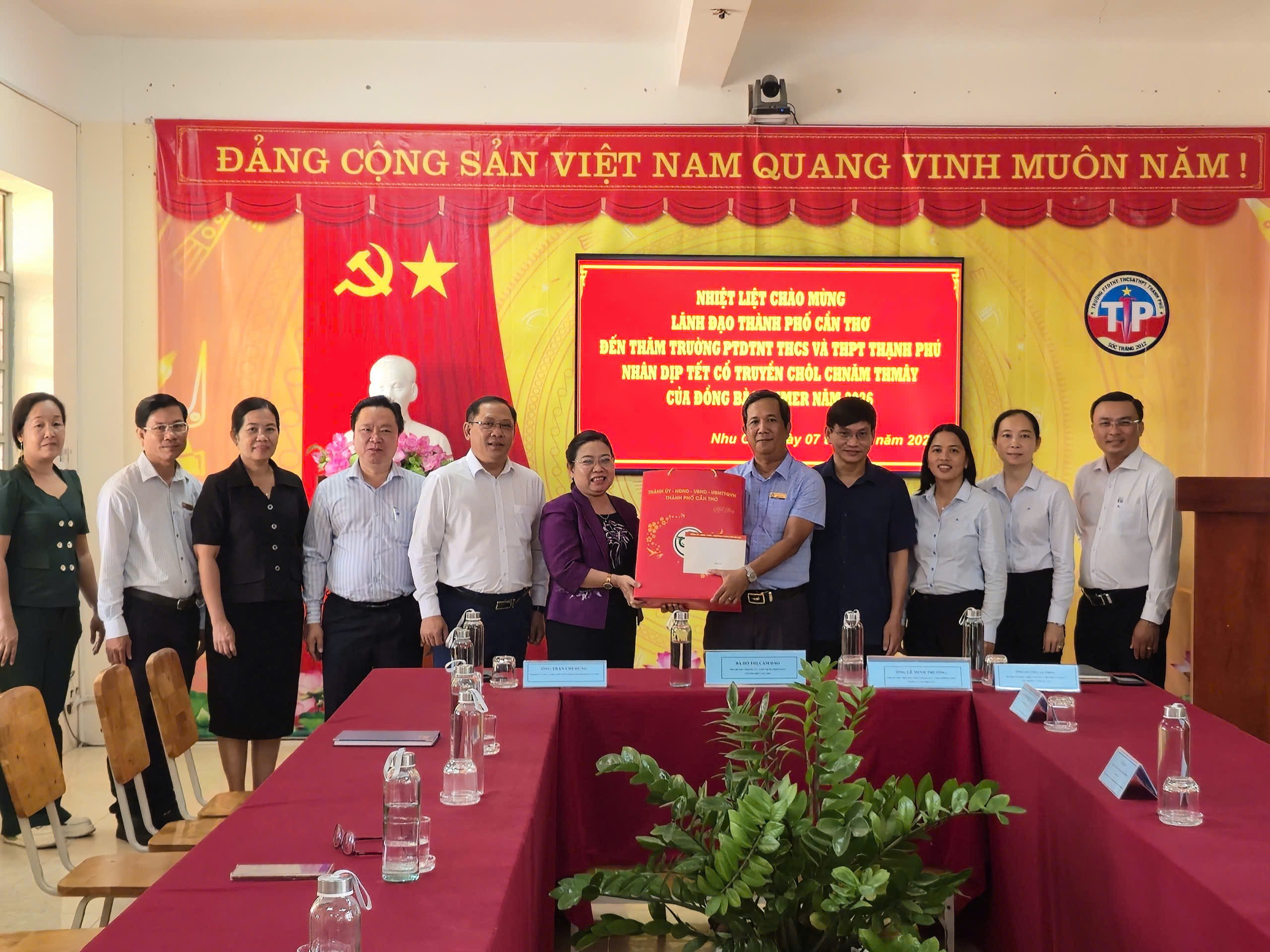 Lãnh đạo thành phố tặng quà tập thể giáo viên và học sinh Trường phổ thông DTNT THCS và THPT Thạnh Phú (xã Nhu Gia).