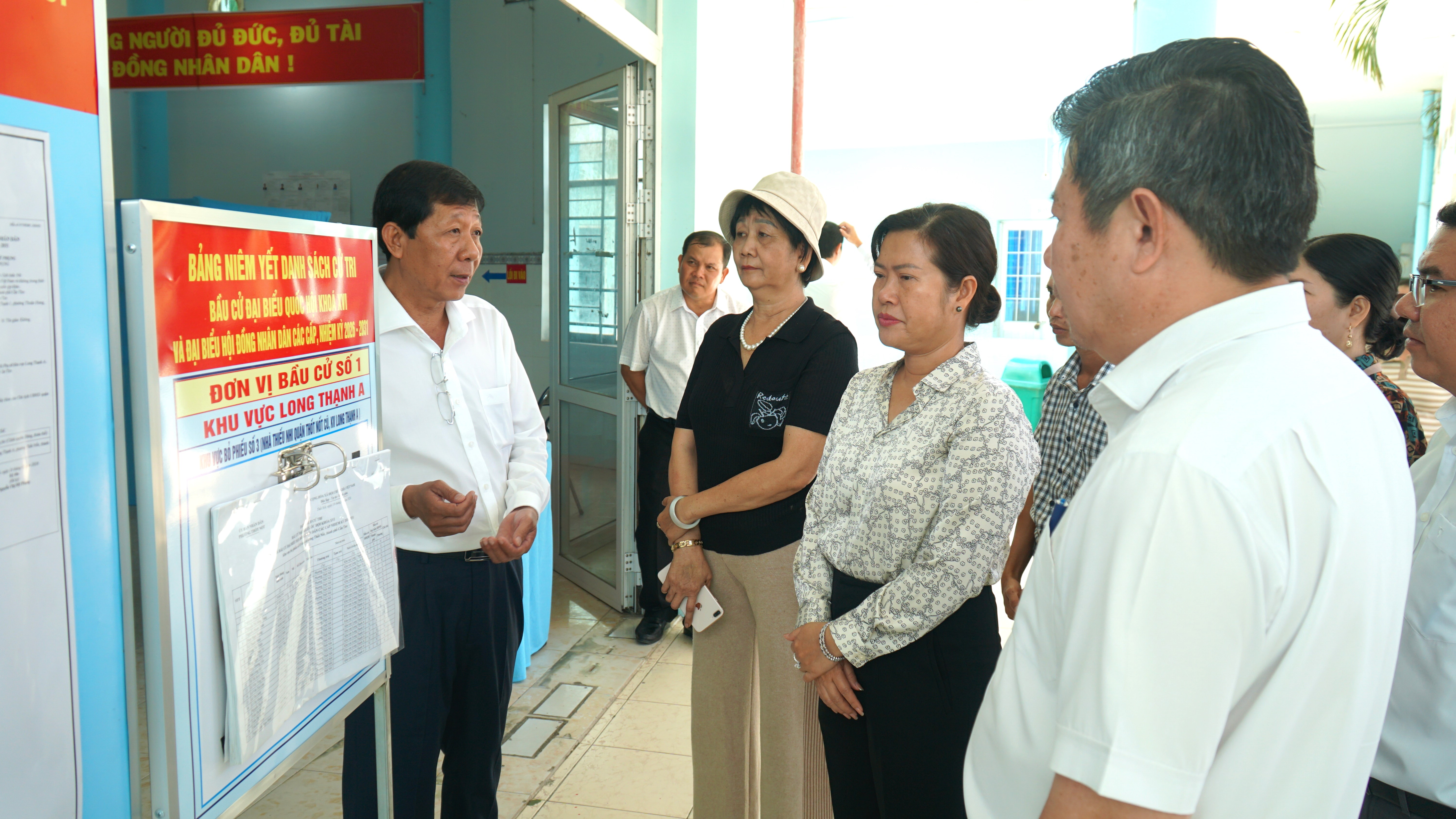 Phó Chủ tịch UBND thành phố Nguyễn Thị Ngọc Điệp kiểm tra tại khu vực bỏ phiếu số 3, đơn vị bầu cử số 1, phường Thốt Nốt.
