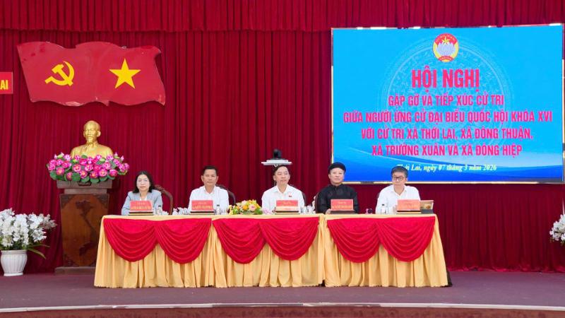 Các ứng cử viên Đại biểu Quốc hội khoá XVI - Đơn vị bầu cử số 02 tại hội nghị gặp gỡ, tiếp xúc với cử tri xã Thới Lai, Đông Thuận, Trường Xuân và Đông Hiệp.
