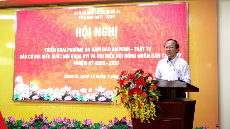 Đến thời điểm này, Ban chỉ đạo, Ủy ban Bầu cử xã Nhơn Ái đã chuẩn bị chu đáo các bước cho bầu cử đúng theo tiến độ thời gian và luật định. Trong đó, Tiểu Ban bảo đảm an ninh trật tự - An toàn xã hội đã phân công 100% lực lượng bảo vệ tuyệt đối an toàn cho 24 điểm bầu cử trên địa bàn xã; đảm bảo ngày bầu cử 15/03/2026 diễn ra thành công tốt đẹp, thật sự là ngày hội của toàn dân.