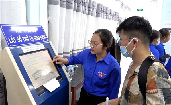 Đoàn viên thanh niên hỗ trợ người dân thực hiện TTHC.