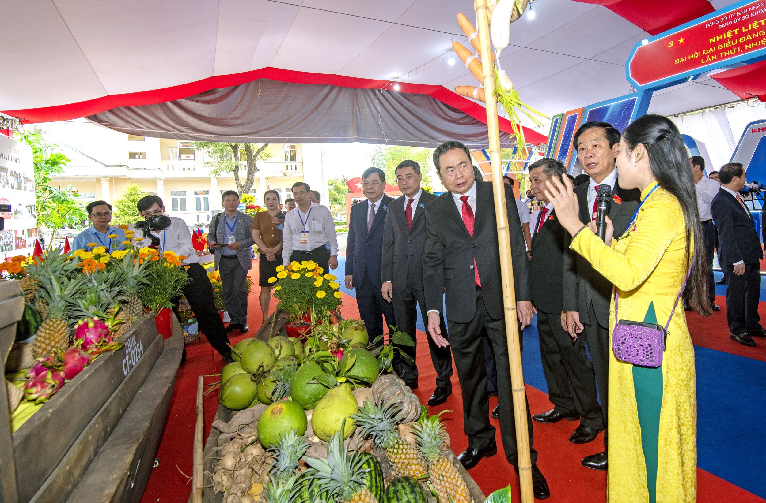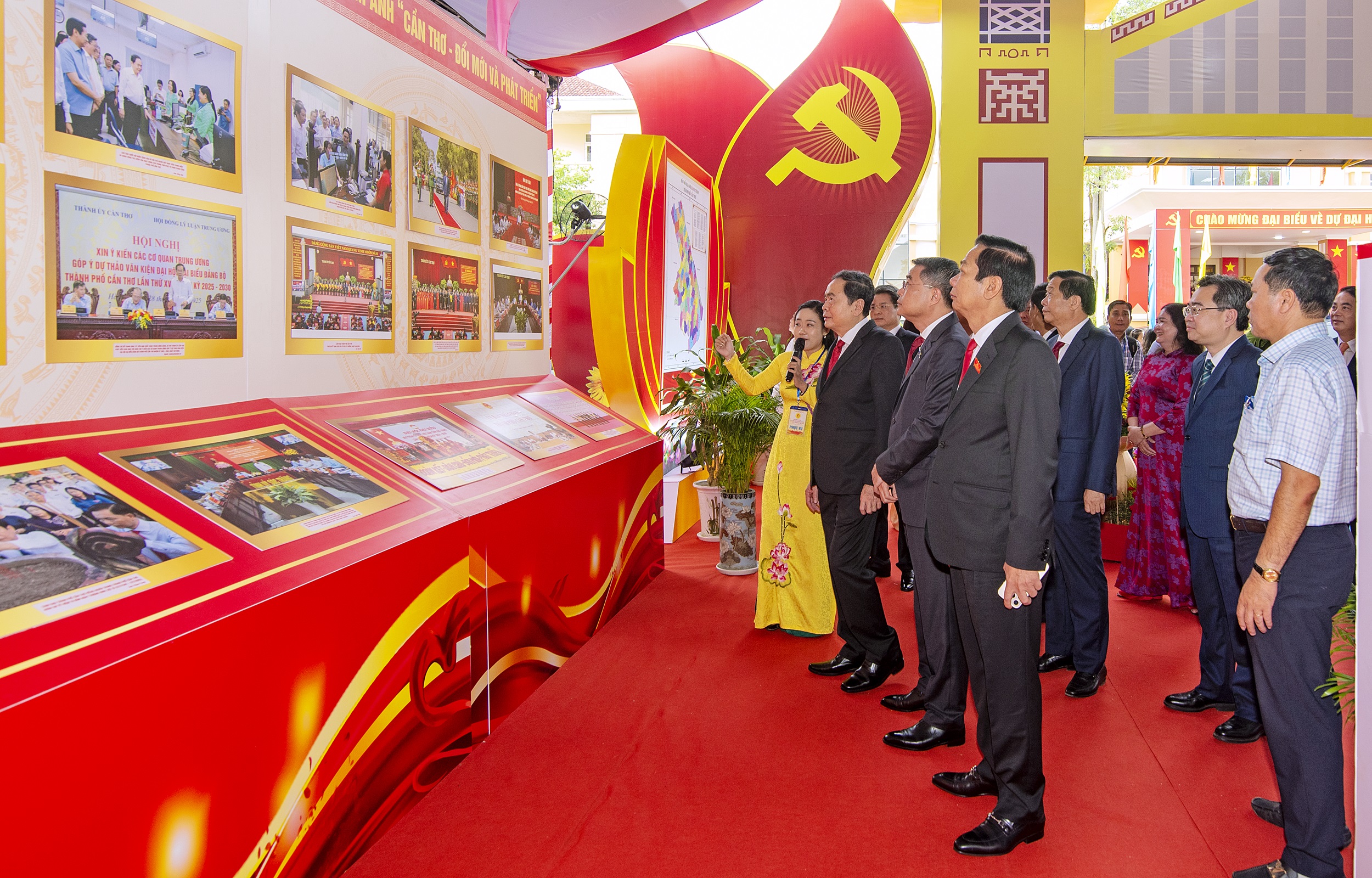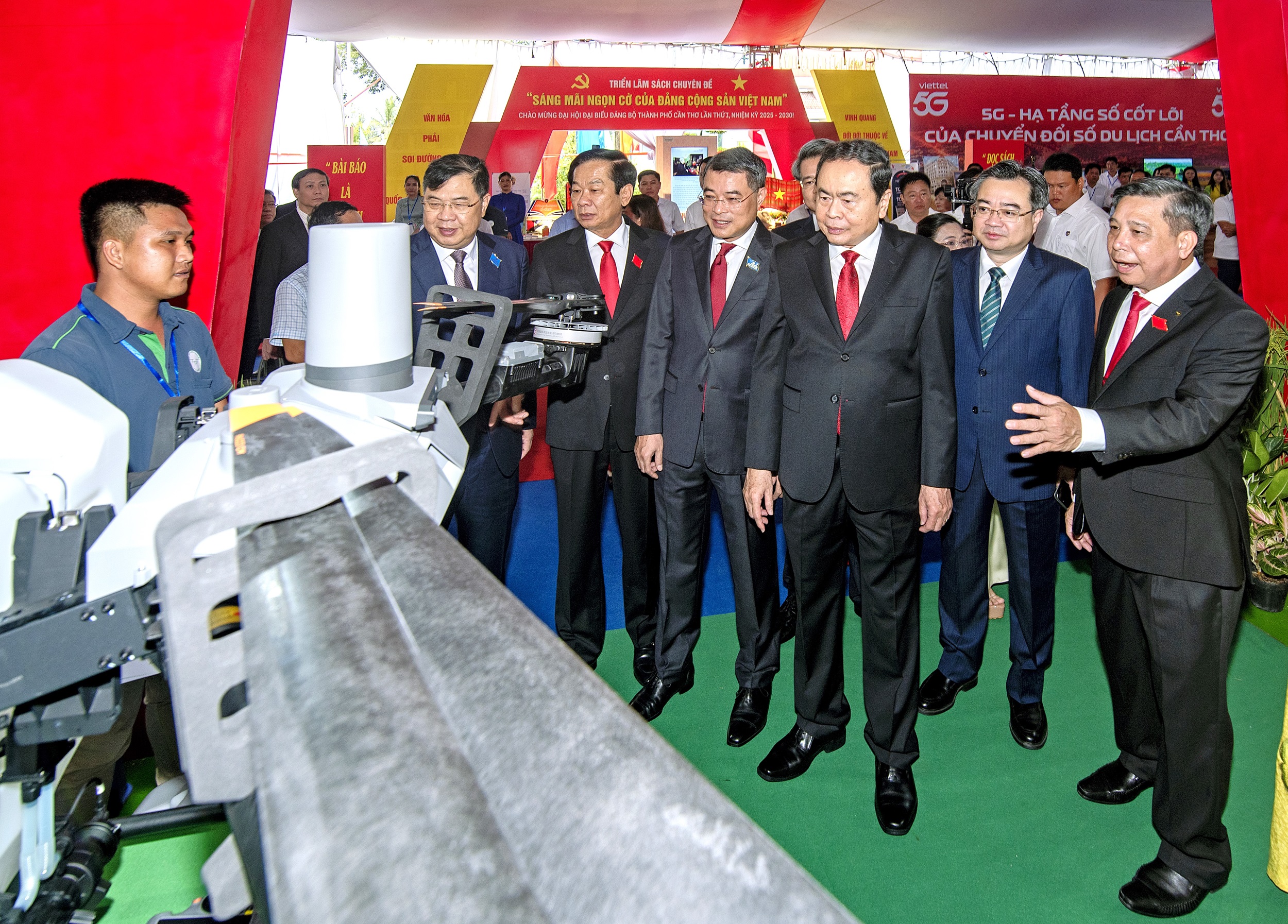 Đồng chí Trần Thanh Mẫn, Ủy viên Bộ Chính trị, Chủ tịch Quốc hội cùng lãnh đạo Trung ương đến tham quan Khu trưng bày, triển lãm “Thành tựu TP. Cần Thơ nhiệm kỳ 2020 - 2025” chào mừng Đại hội.