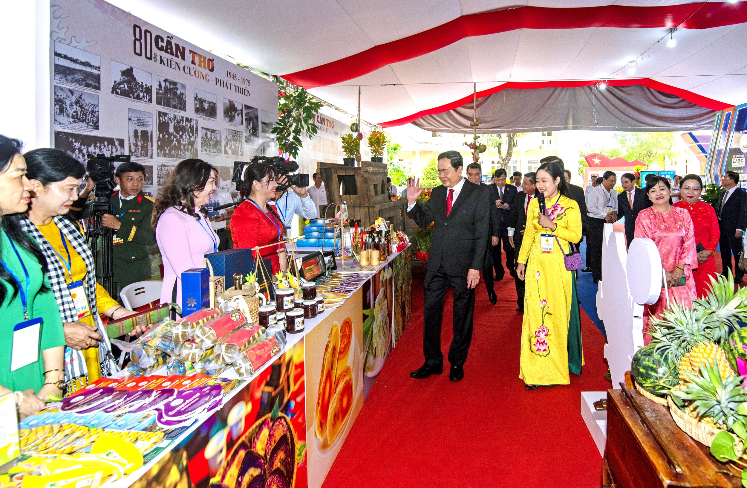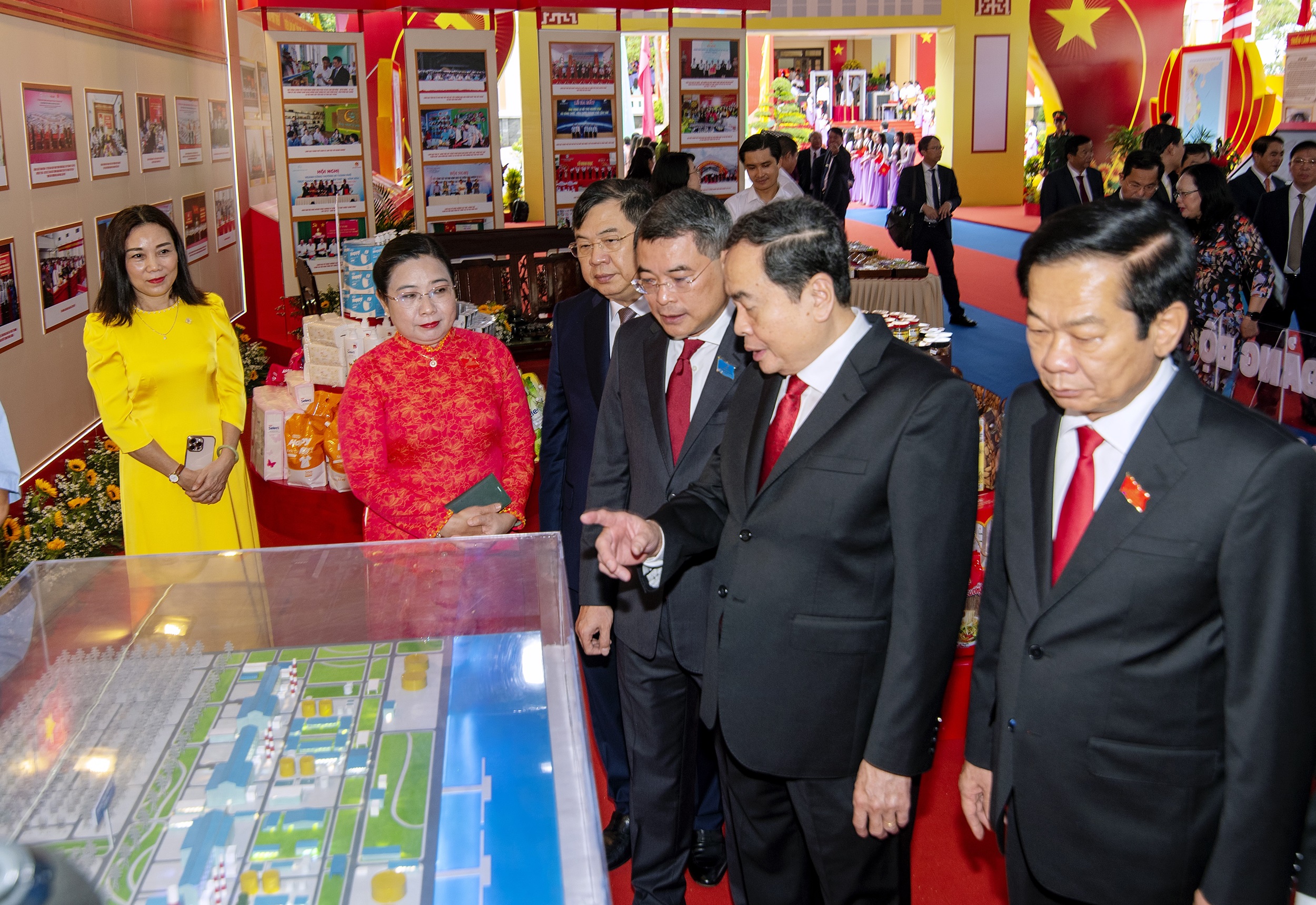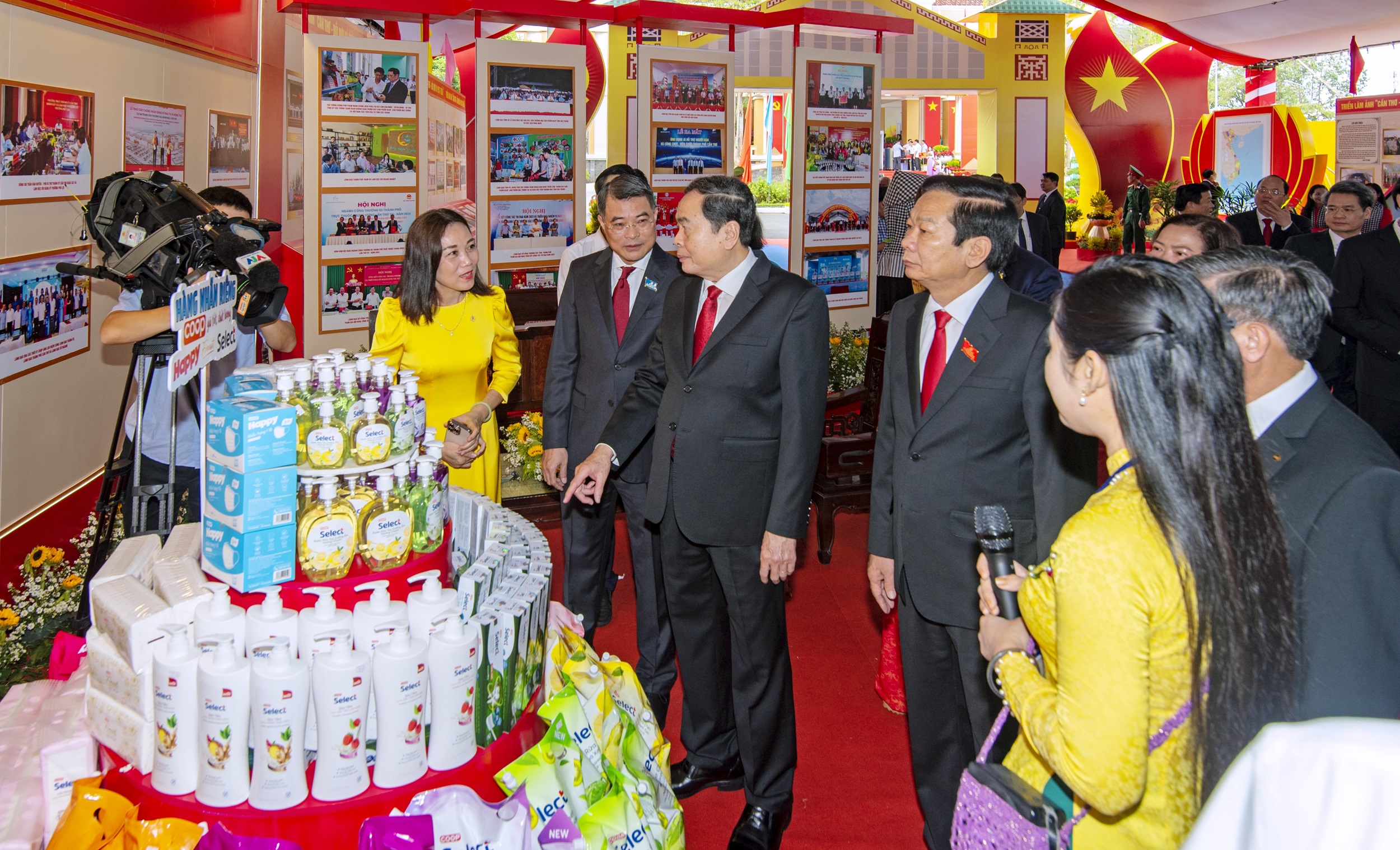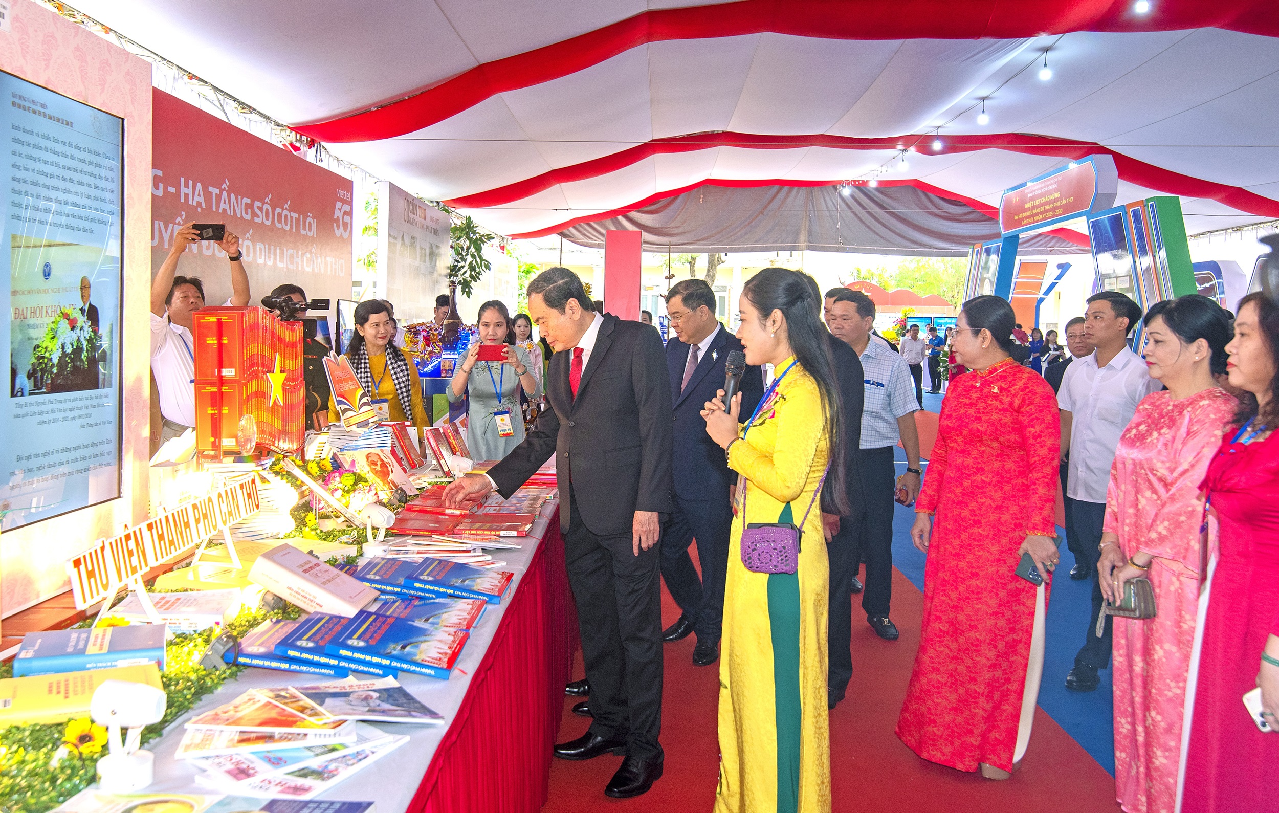 Đồng chí Trần Thanh Mẫn, Ủy viên Bộ Chính trị, Chủ tịch Quốc hội cùng lãnh đạo Trung ương đến tham quan Khu trưng bày, triển lãm “Thành tựu TP. Cần Thơ nhiệm kỳ 2020 - 2025” chào mừng Đại hội.