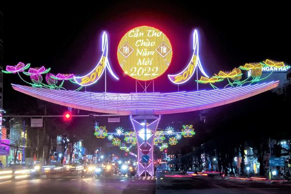 Tối 22/12/2021, Đường đèn nghệ thuật “Mừng Đảng quang vinh - Mừng xuân Nhâm Dần năm 2022” thành phố Cần Thơ chính thức hoạt động.