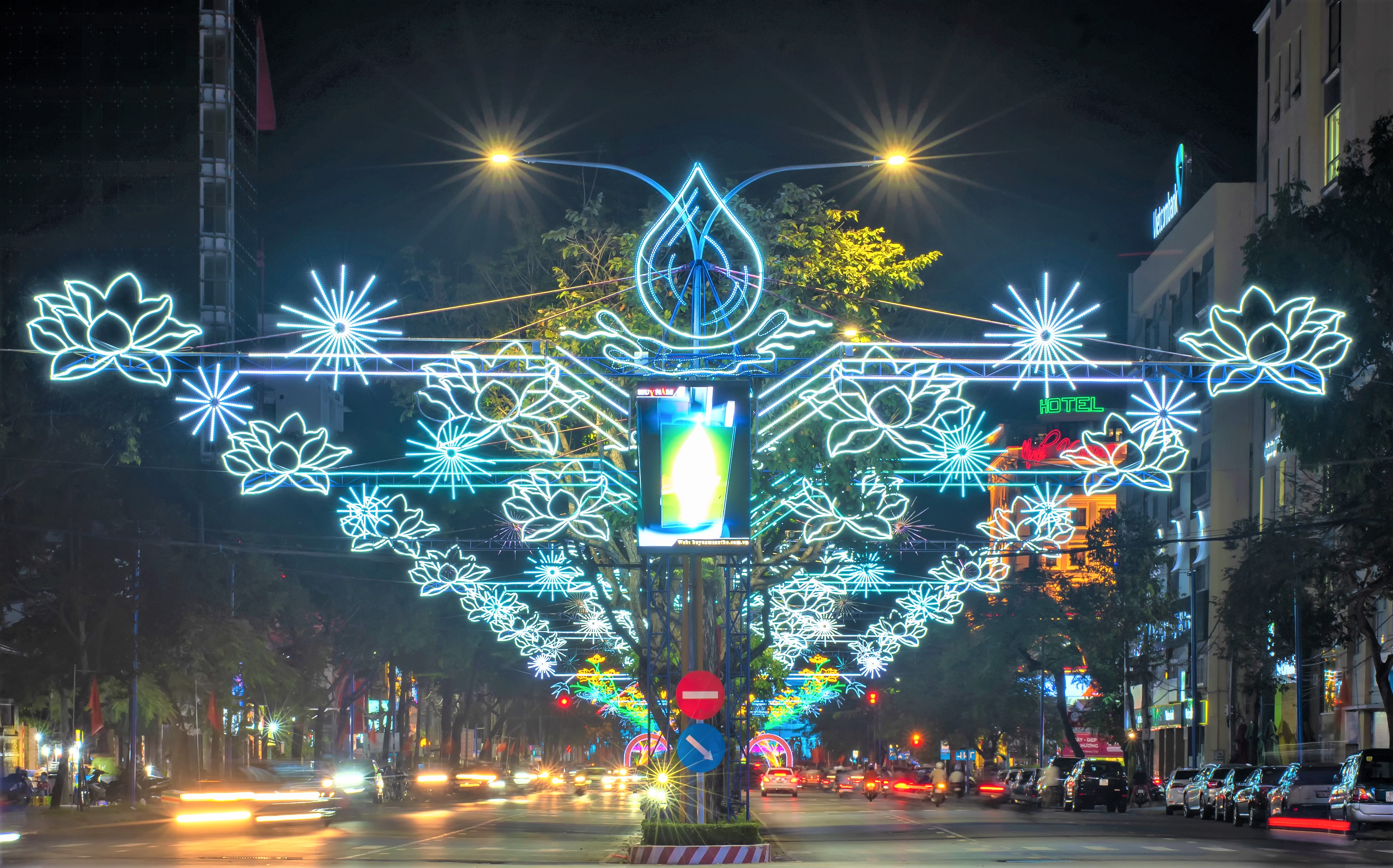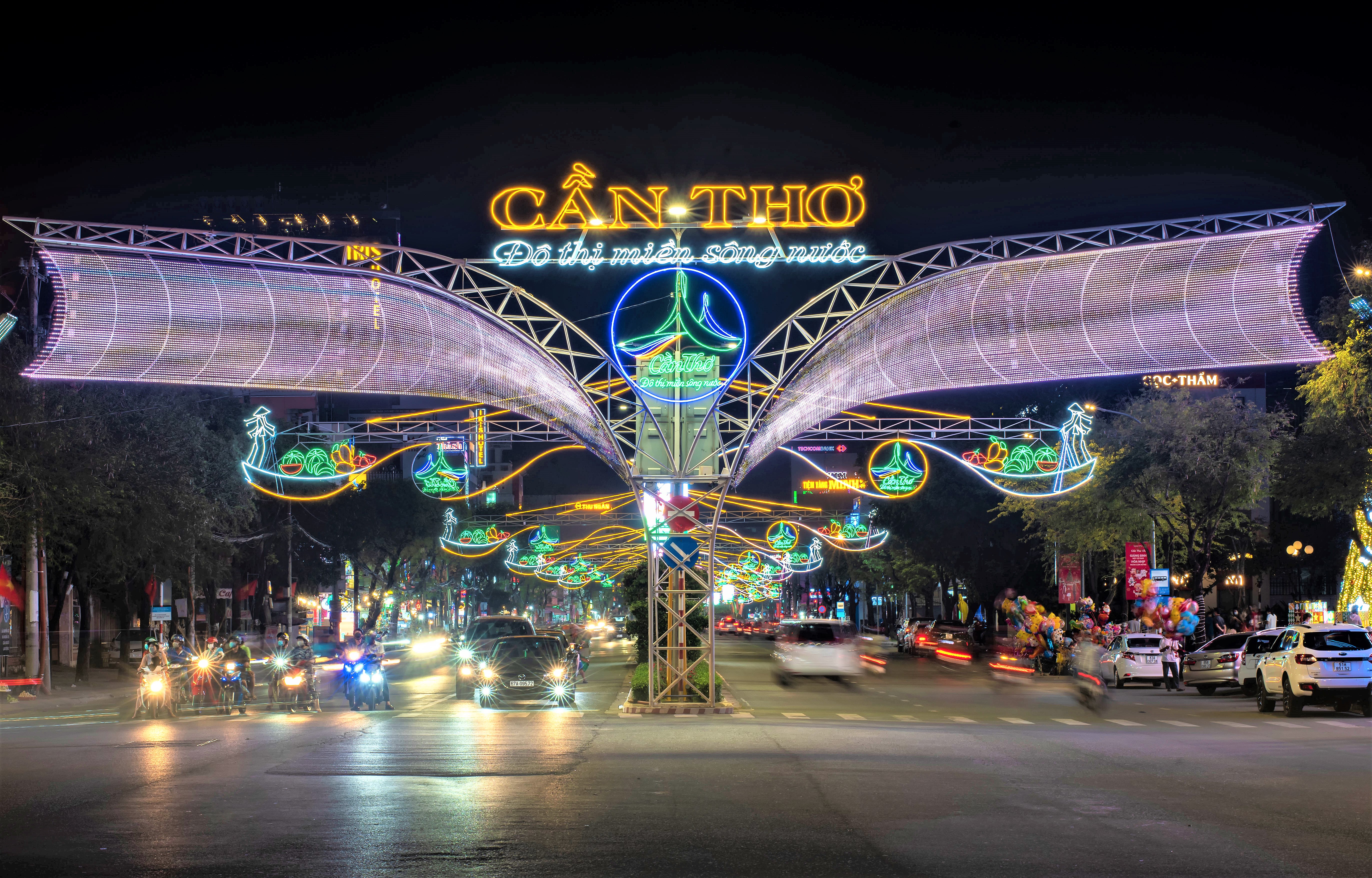 Ngoài ra, đoạn đường đèn từ giao lộ Trần Văn Hoài – đường 30/4 đến chợ Xuân Khánh cũng được trang trí đèn nghệ thuật giới thiệu về du lịch Cần Thơ – đô thị miền sông nước.
