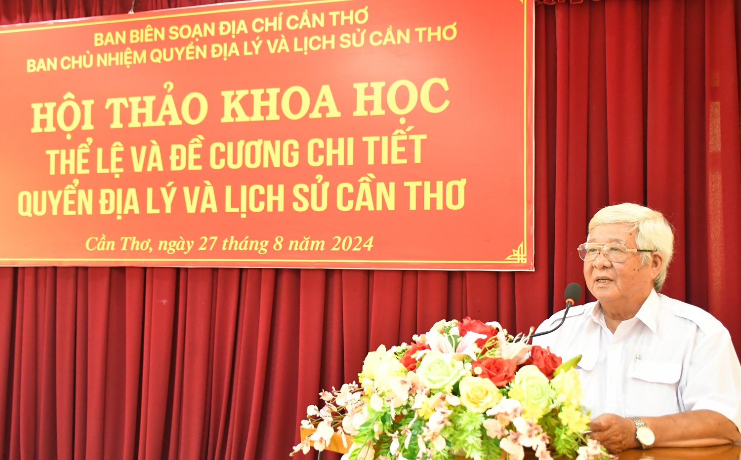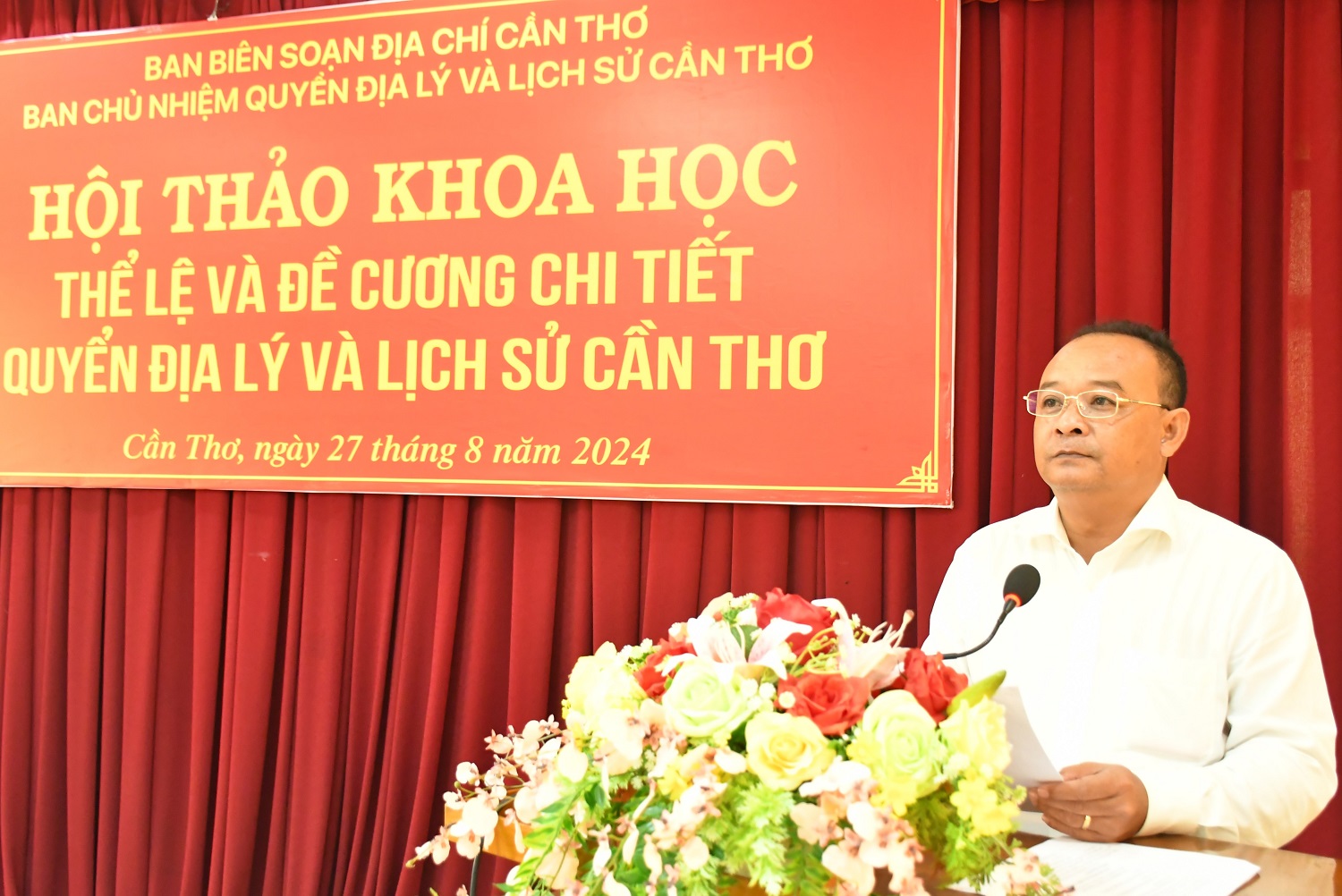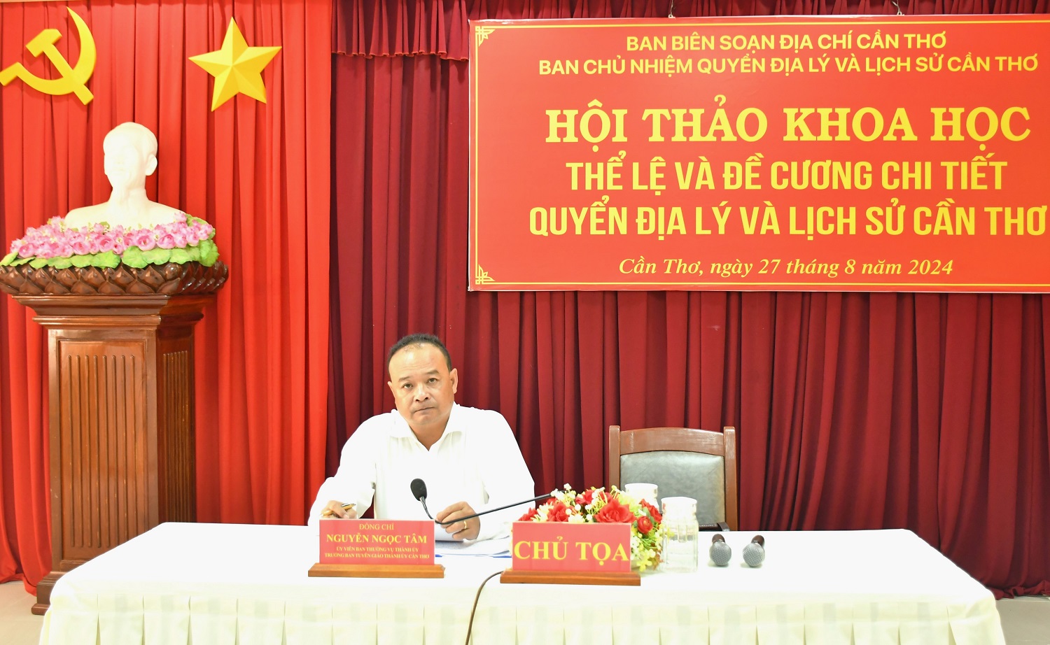 Ngày 27/8/2024, Ban Chủ nhiệm đề tài Nghiên cứu và biên soạn Địa chí Cần Thơ: Địa lý và Lịch sử Cần Thơ tổ chức Hội thảo khoa học “Thể lệ và đề cương chi tiết Quyển Địa lý và Lịch sử Cần Thơ”, đồng chí Nguyễn Ngọc Tâm, Ủy viên Ban Thường vụ, Trưởng Ban Tuyên giáo Thành ủy Cần Thơ, Chủ nhiệm Quyển Địa lý và Lịch sử Cần Thơ chủ trì Hội thảo.