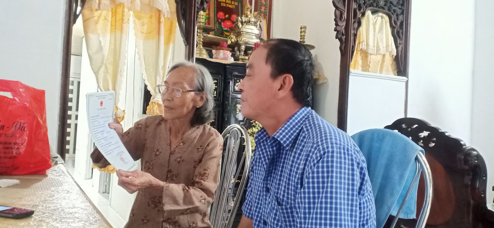 Bà Bông vui mừng khi hoàn thành thủ tục đăng ký lại giấy khai sinh.