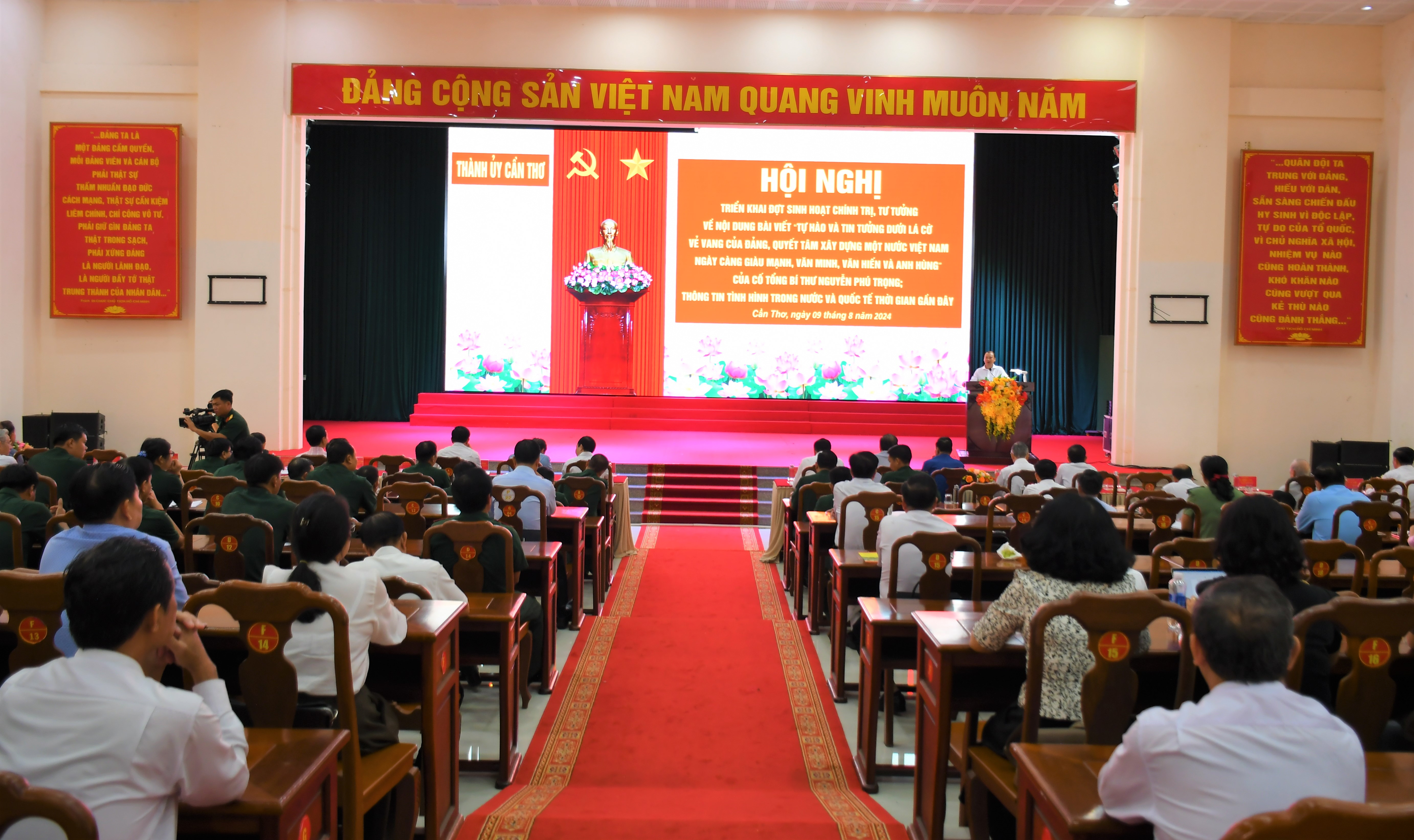 Ngày 09/8, Ban Thường vụ Thành ủy Cần Thơ tổ chức Hội nghị chuyên đề triển khai đợt sinh hoạt chính trị, tư tưởng về nội dung bài viết “Tự hào và tin tưởng dưới lá cờ vẻ vang của Đảng, quyết tâm xây dựng một nước Việt Nam ngày càng giàu mạnh, văn minh, văn hiến và anh hùng” của cố Tổng Bí thư Nguyễn Phú Trọng; và thông tin tình hình trong nước và quốc tế thời gian gần đây.