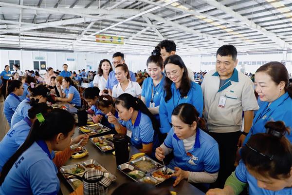Lãnh đạo LÐLÐ TP Cần Thơ, Công đoàn các Khu Chế xuất và Công nghiệp Cần Thơ thăm hỏi ĐV, NLÐ tại “Bữa cơm đặc biệt” của Công ty TNHH TKG Taekwang Cần Thơ.