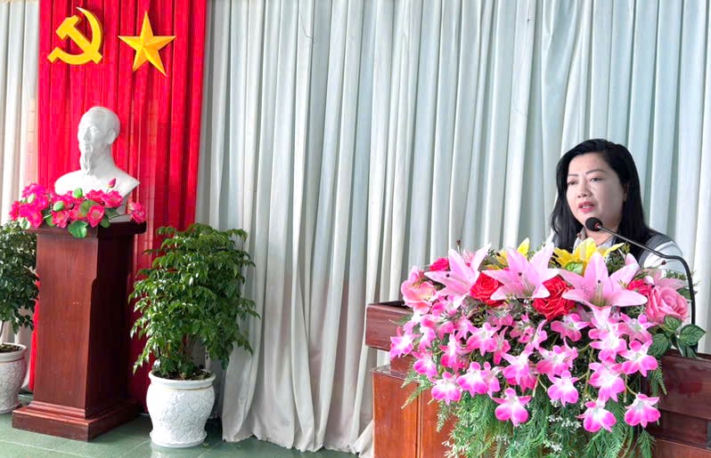 Đồng chí Nguyễn Ngọc Trân, Ủy viên Ban Chấp hành Đảng bộ phường, Phó Trưởng Ban xây dựng Đảng phường Vị Tân phát biểu tại hội nghị.