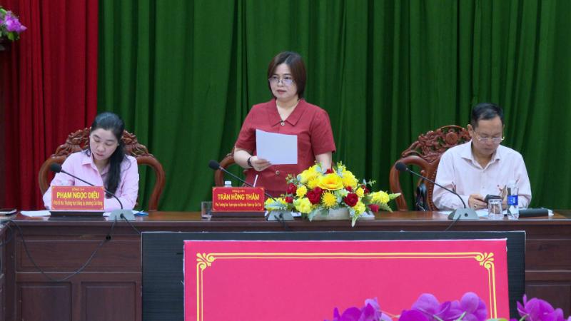 Đồng chí Trần Hồng Thắm, Phó Trưởng Ban Tuyên giáo và Dân vận Thành ủy phát biểu tại buổi khảo sát.