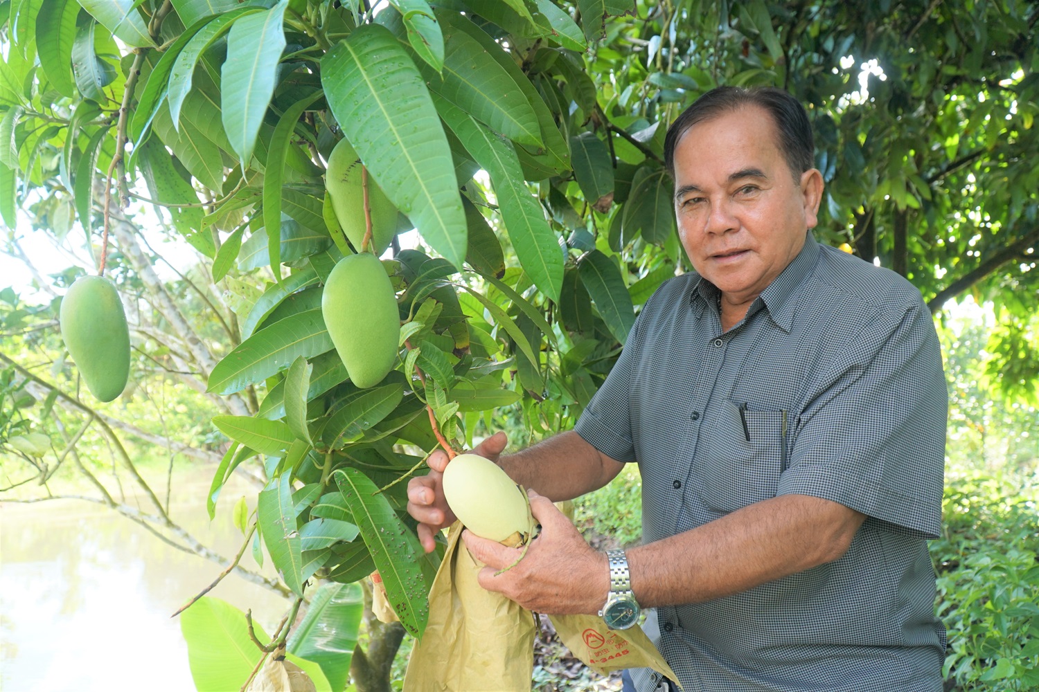 Vườn xoài của gia đình CCB Phan Văn Tây rộng 2,7 hecta, gồm diện tích trồng cây và các mương để nuôi cá. Gần nửa tháng qua, CCB Phan Văn Tây đã thu hoạch vụ xoài da xanh thứ hai trong năm 2024. Dự kiến vườn xoài sẽ cho trái đến hết năm 2024, sản lượng khoảng 11 tấn. Trước đó, ông Tây đã thu hoạch khoảng 7 tấn xoài vào đầu năm 2024. Cây xoài thu hoạch trái xong khoảng 10 ngày thì CCB Phan Văn Tây tỉa cành, làm táng cây để bắt đầu vụ mới. Theo CCB Phan Văn Tây, trồng xoài khó nhất là xử lý để xoài ra hoa, làm trái. Năng xuất cây xoài cũng phụ thuộc nhiều vào thời tiết. Do đó, ông đã tích lũy kinh nghiệm qua từng năm để việc trồng xoài cho hiệu quả cao nhất, dù thời tiết ngày càng thất thường…