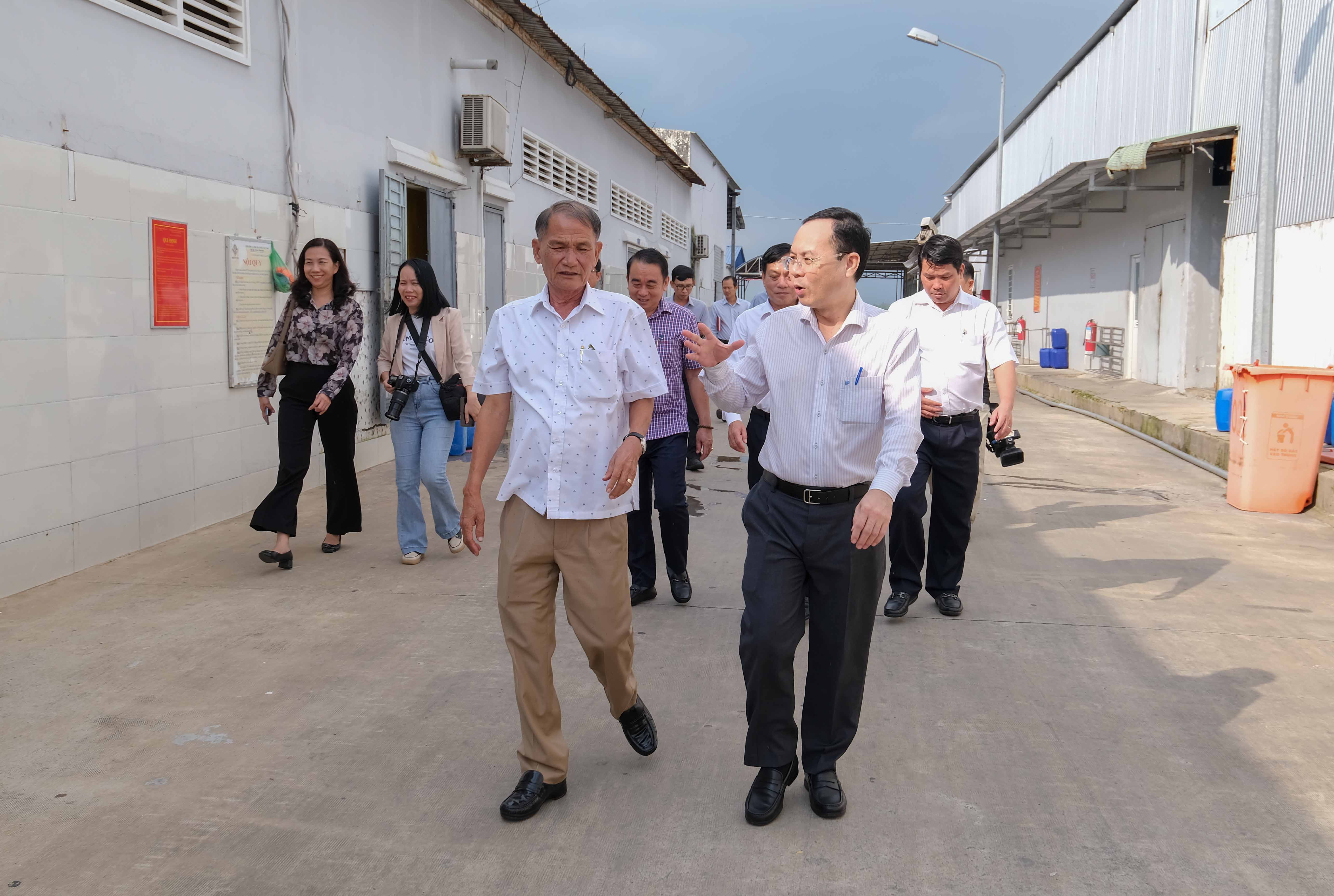 Đồng chí Bí thư Thành ủy Cần Thơ Nguyễn Văn Hiếu đi tham quan nhà máy của Công ty TNHH Công nghiệp Thủy sản Miền Nam.