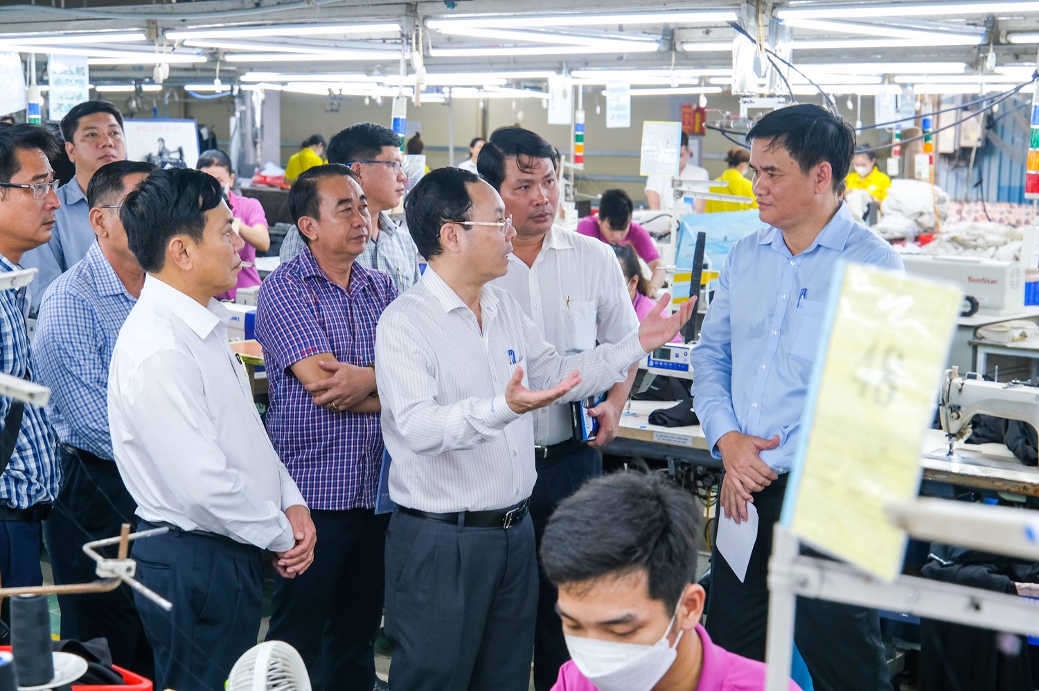 Đồng chí Bí thư Thành ủy Cần Thơ Nguyễn Văn Hiếu tham quan xưởng may của Công ty TNHH May xuất khẩu Việt Thành.