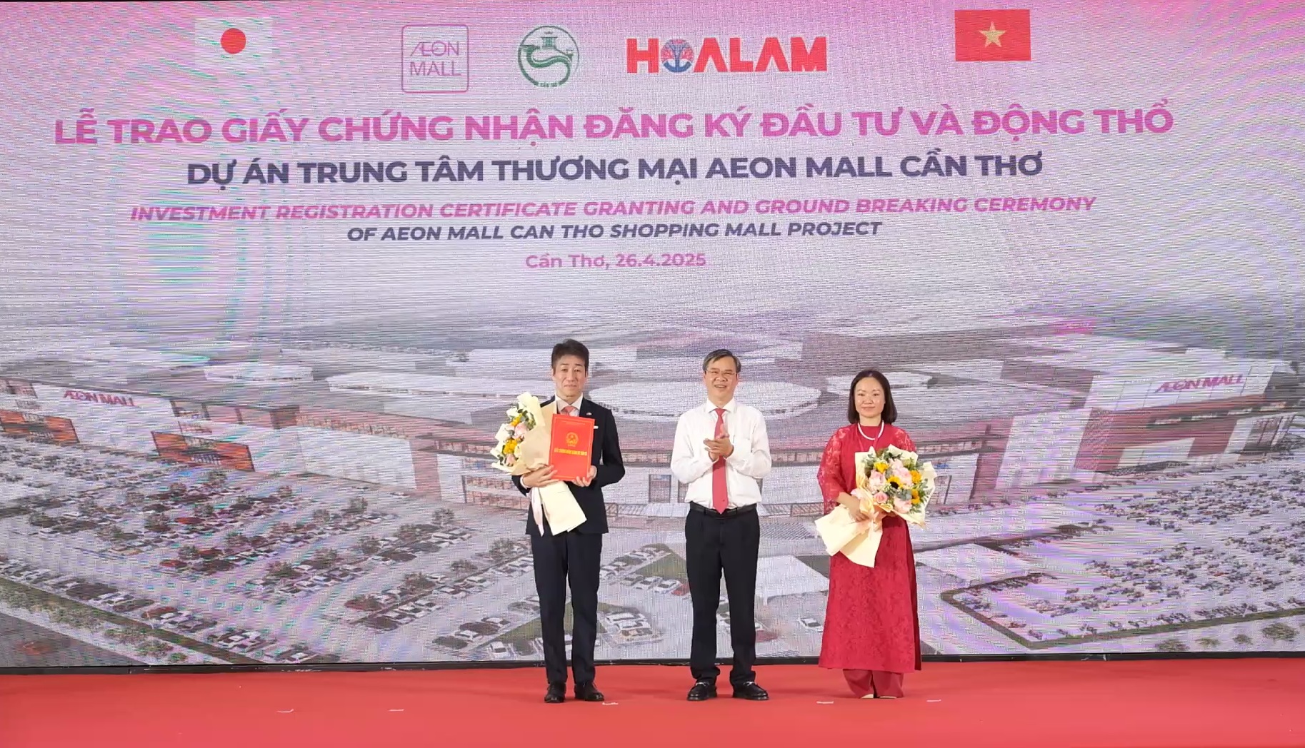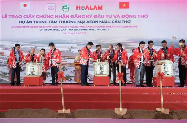 Ngày 26/4, trong không khí hân hoan kỷ niệm 50 năm Ngày Giải phóng miền Nam, thống nhất đất nước (30/4/1975 - 30/4/2025), Lễ trao Giấy chứng nhận đăng ký đầu tư và khởi công dự án Aeon Mall Cần Thơ đã diễn ra tại phường Long Hòa, quận Bình Thủy, thành phố Cần Thơ. Dự án có tổng vốn đầu tư 5.400 tỷ đồng, khi hoàn thiện sẽ là trung tâm thương mại lớn nhất khu vực Đồng bằng sông Cửu Long.