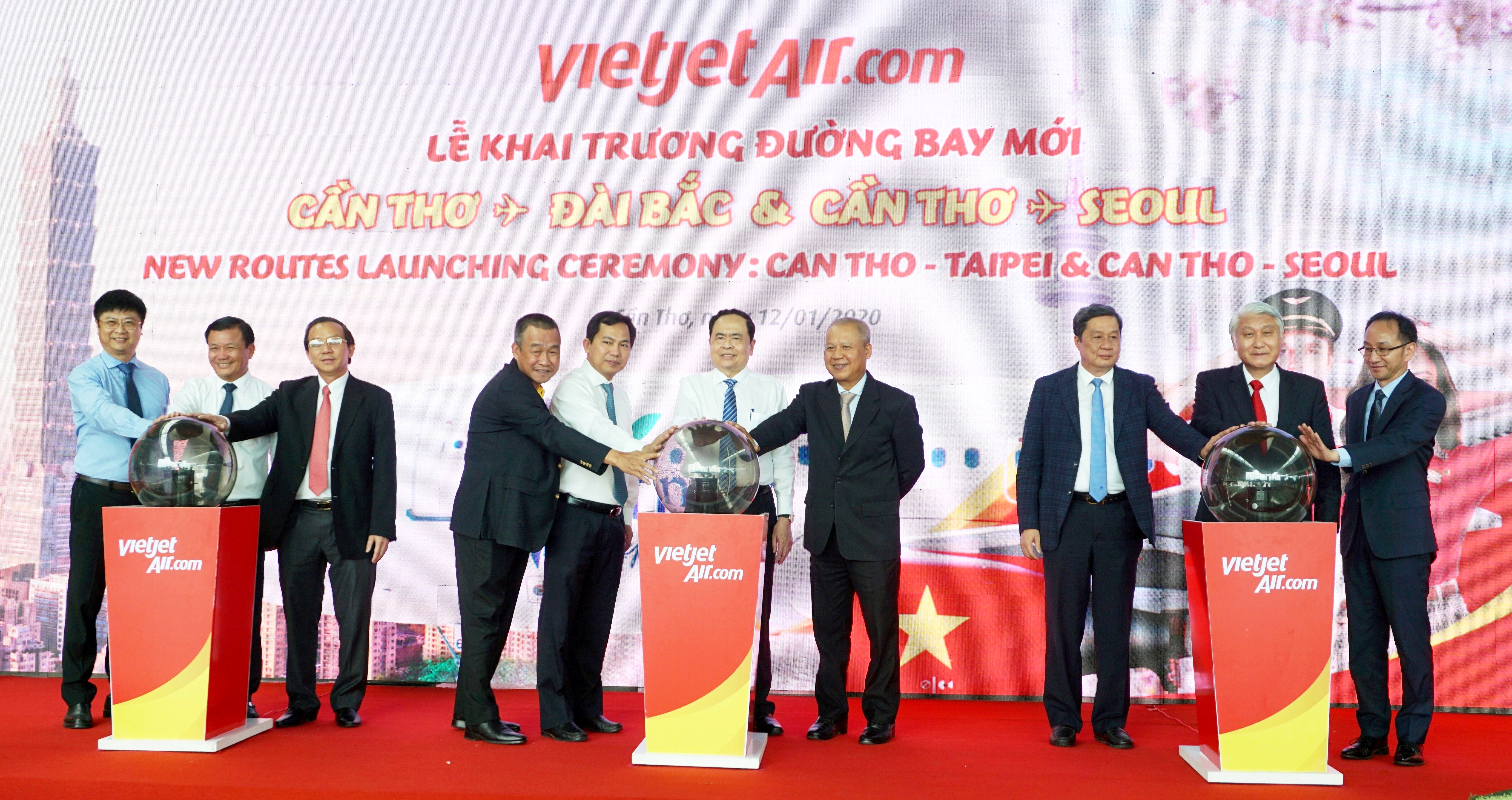 Ngày 12/01/2020, tại Cảng Hàng không quốc tế Cần Thơ, hãng hàng không Vietjet (Vietjet Air) chính thức khai trương hai đường bay quốc tế kết nối TP Cần Thơ với Đài Bắc (Đài Loan, Trung Quốc) và Seoul (Hàn Quốc).