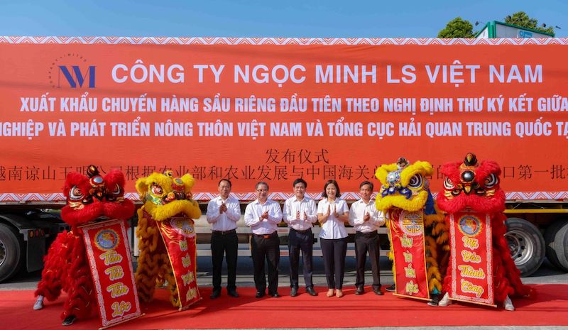 Lãnh đạo thành phố chúc mừng lô Sầu Riêng đầu tiên xuất khẩu sang Trung Quốc.