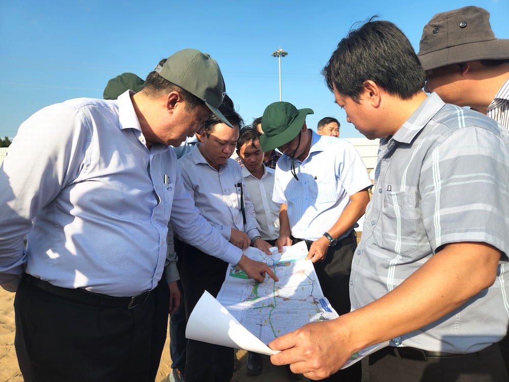Lãnh đạo thành phố khảo sát tiến độ giải phóng mặt bằng cao tốc Bắc Nam phía Đông, dự án thành phần Cần Thơ - Hậu Giang. Ảnh: Mỹ Thanh.