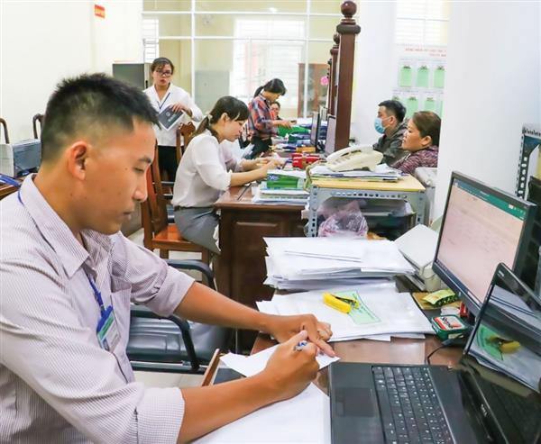 Việc sáp nhập các ĐVHC cấp huyện, cấp xã giúp tổ chức bộ máy tinh gọn, hoạt động hiệu lực, hiệu quả, tiết kiệm cho ngân sách nhà nước. Trong ảnh: Công chức phường Tân An đẩy mạnh ứng dụng công nghệ thông tin để giải quyết công việc, phục vụ người dân tốt hơn. Ảnh: Dân An.