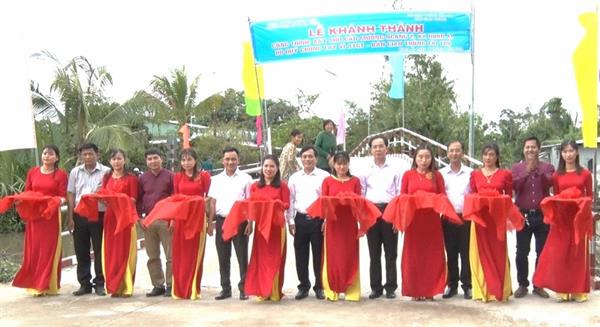 Các đồng chí lãnh đạo thực hiên nghi thức khánh thành cầu giao thông Mương Ngang 2.