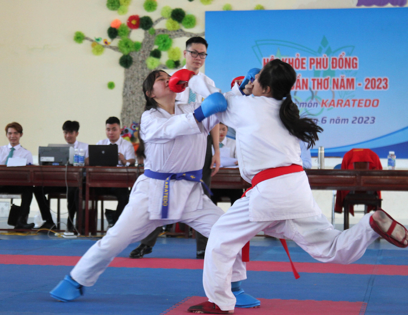 Chiều 23/6, môn Karatedo trong khuôn khổ Hội khỏe Phù Đổng (HKPĐ) TP Cần Thơ năm 2023 hoàn thành chương trình thi đấu, sau những trận chung kết nội dung đối kháng (kumite) gay cấn. Đây cũng là môn thi đấu kết thúc cuối cùng tại HKPĐ cấp thành phố năm nay, khép lại các cuộc tranh tài sôi nổi trong suốt gần 1 tuần qua. Sau đây là một số hình ảnh ấn tượng tại HKPĐ TP Cần Thơ năm nay: