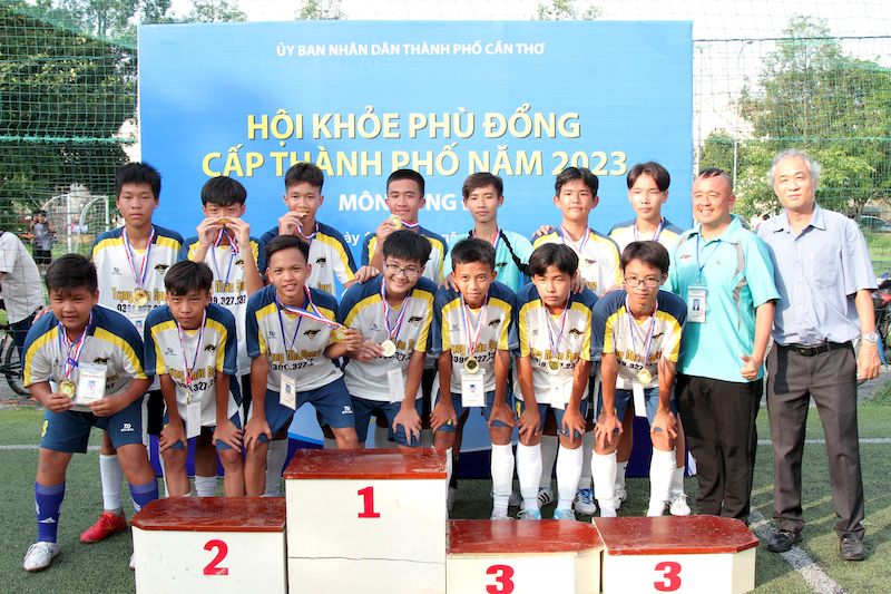Trận chung kết môn bóng đá tiểu học diến ra căng thẳng giữa hai đội Bình Thủy và Thới Lai. Với tỷ số hòa 1-1 sau 2 hiệp, hai đội phải đá luân lưu phân định thắng thua và đội Bình Thủy lên ngôi vô địch với chiến thắng 5-4.