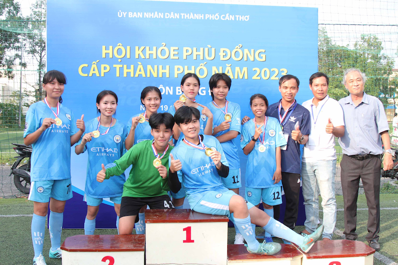 Đội bóng THCS Ninh Kiều nhận HCV.