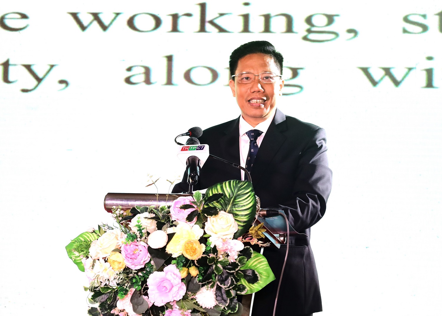 Đồng chí Nguyễn Thực Hiện, Phó Chủ tịch UBND TP Cần Thơ gửi lời chúc mừng năm mới và cảm ơn những người bạn nước ngoài đã đóng góp vào sự phát triển của thành phố.