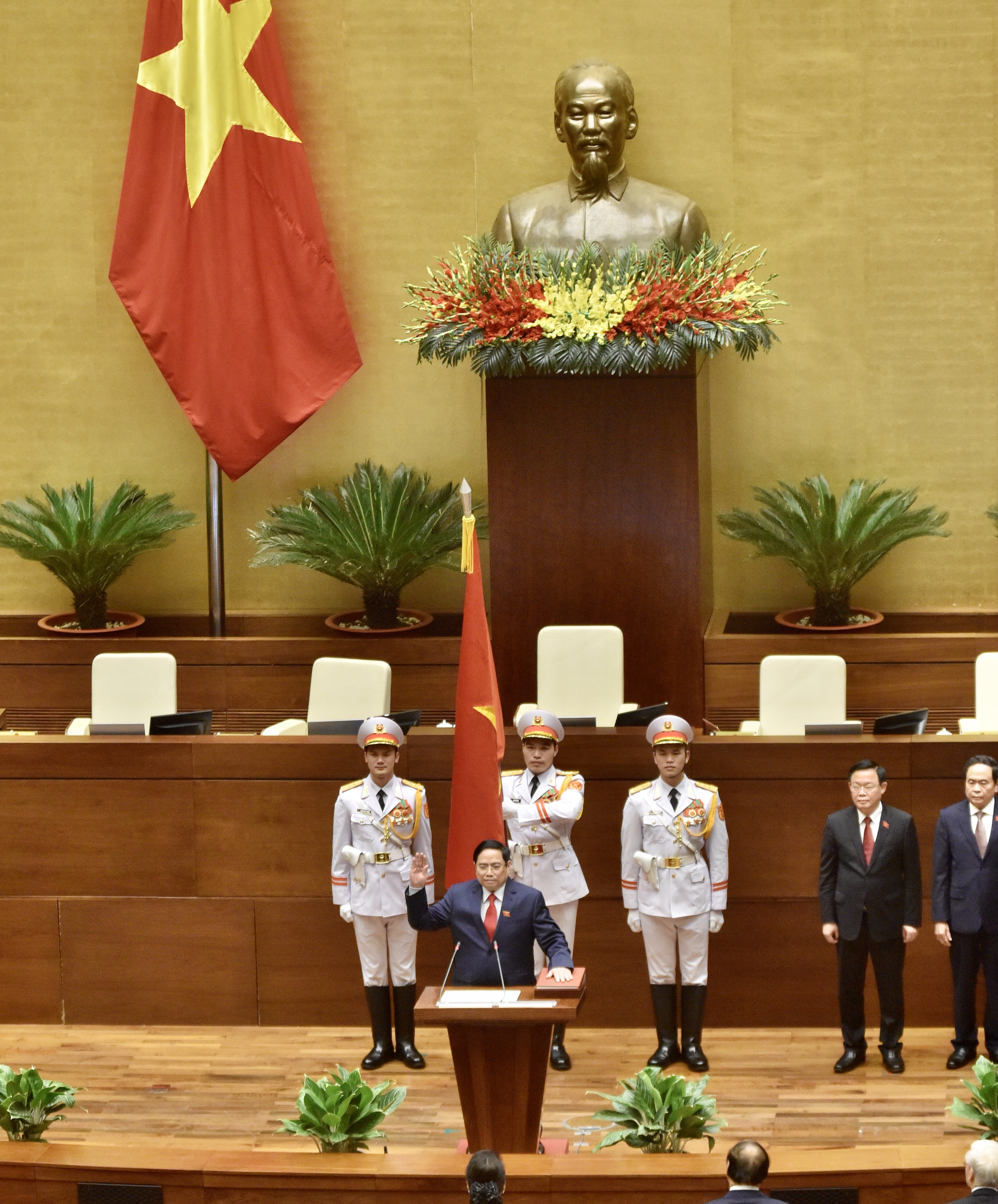 Sau khi Quốc hội biểu quyết thông qua Nghị quyết bầu Thủ tướng Chính phủ, tân Thủ tướng Chính phủ Phạm Minh Chính tuyên thệ nhậm chức.