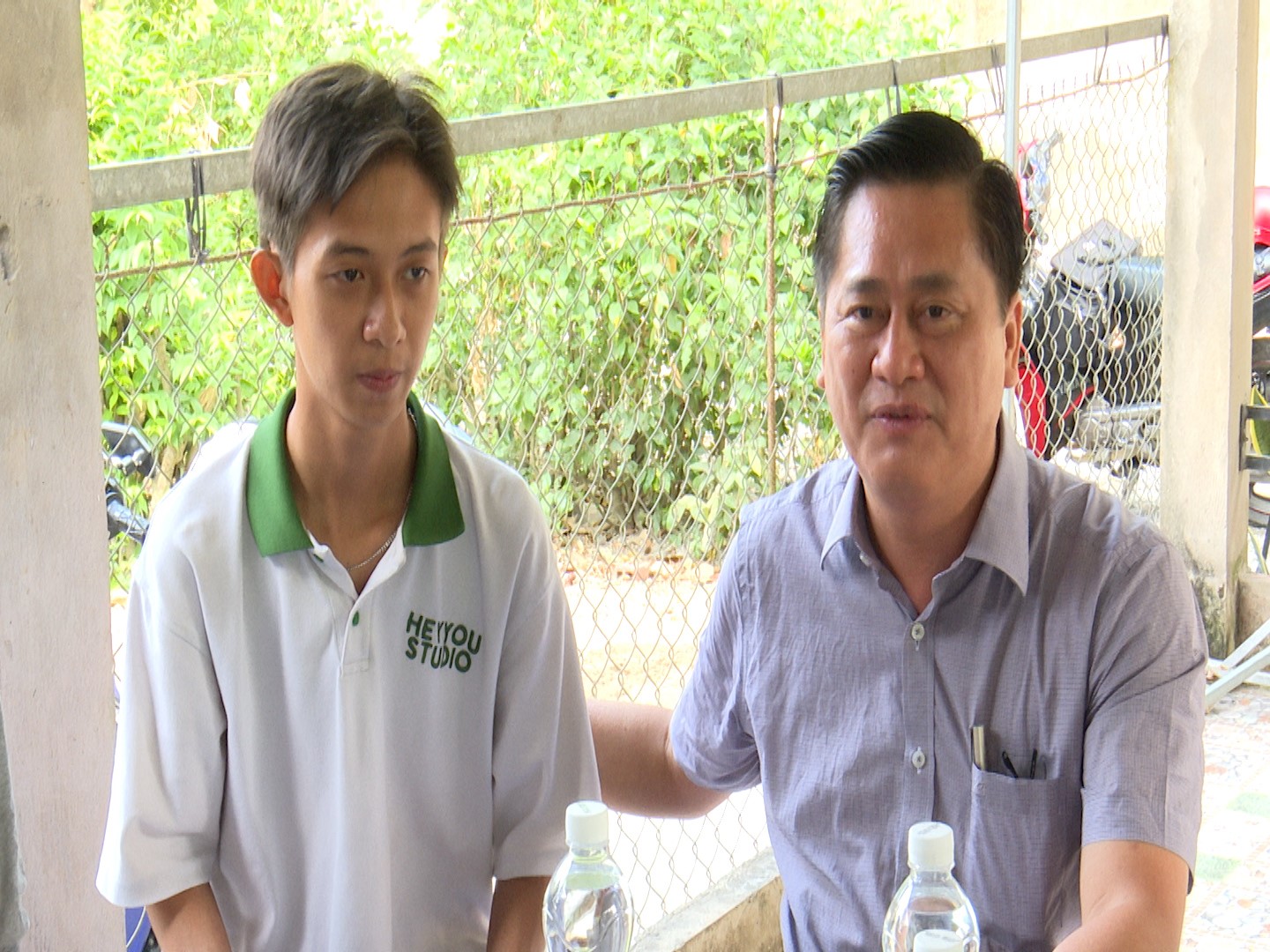 Đồng chí Phạm Văn Hiểu, Phó Bí thư Thường trực Thành ủy, Chủ tịch HĐND TP Cần Thơ, tặng quà thanh niên Lê Hưng Đạt ở phường Hưng Lợi. Ảnh: K.Xuân.