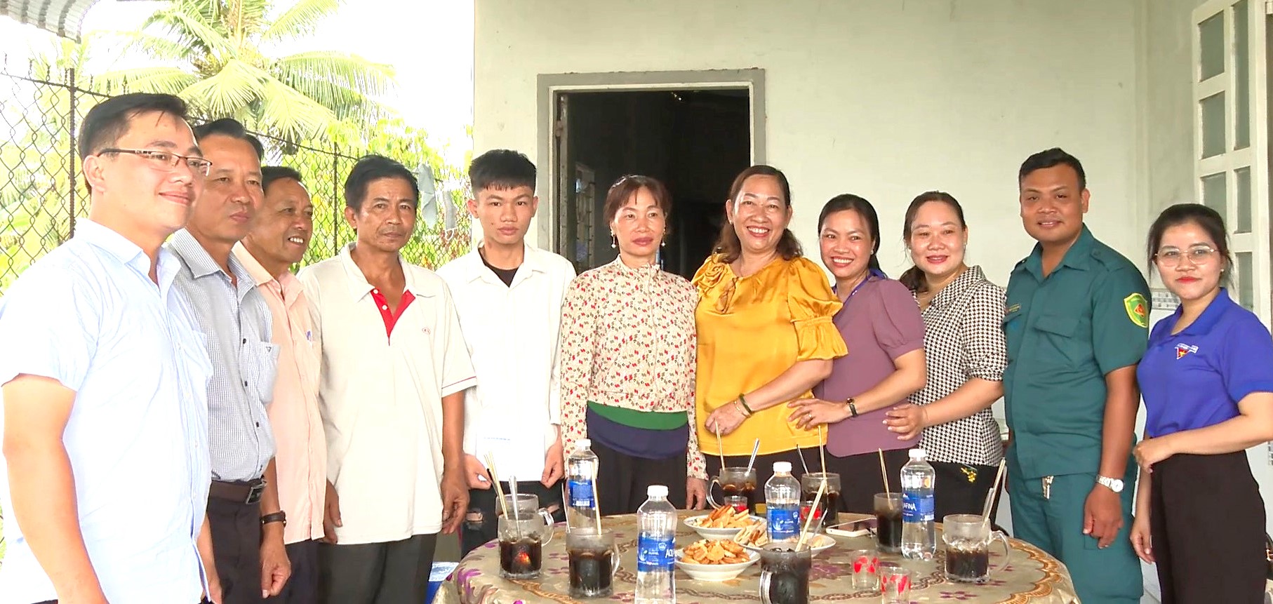 Lãnh đạo thành phố và lãnh đạo huyện Cờ Đỏ đến tham hỏi và tặng quà gia cho đình thanh niên Đặng Hoàng Tuấn ở xã Thạnh Phú. Ảnh: Hoàng Phương.