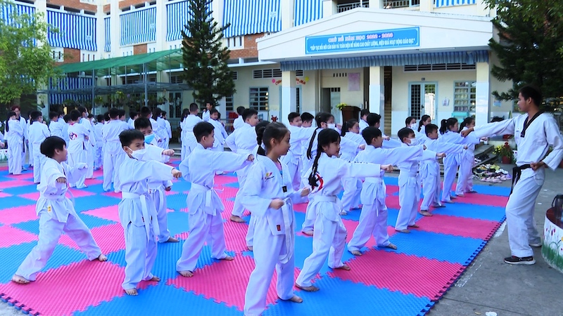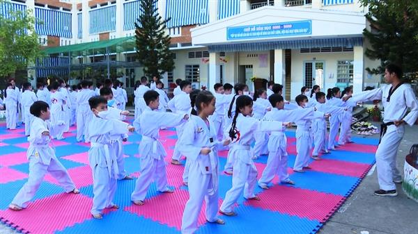 Lớp học võ Taekwondo ở sân Trường Tiểu học An Thới 1.