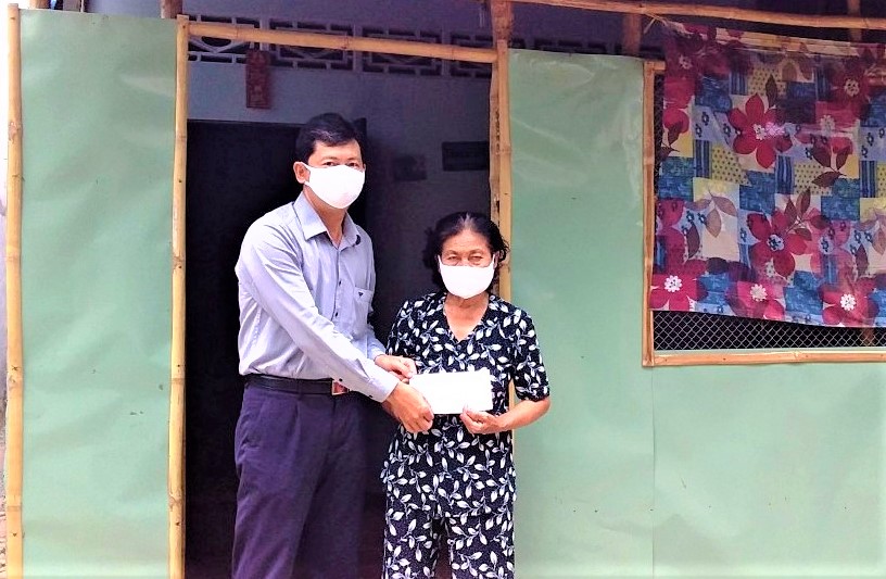 Cán bộ Mặt trận phường Long Tuyền tặng quà hộ Khmer nhân dịp Têt Cổ truyền Chôl Chnăm Thmây 2020. Ảnh: Nguyên Tín.