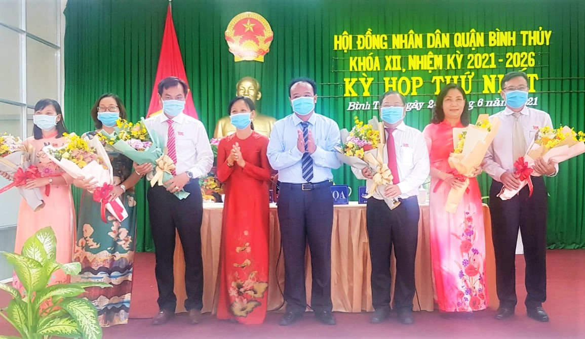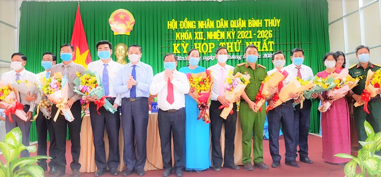 Sau khai mạc kỳ họp, các đại biểu được nghe Thường trực Ủy ban bầu cử quận báo cáo kết quả bầu cử HĐND quận nhiệm kỳ 2021-2026 và báo cáo kết quả xác nhận tư cách đại biểu HĐND quận khóa XII, nhiệm kỳ 2021-2026. Trên tinh thần nghiêm túc, dân chủ, đoàn kết, thẳng thắn, HĐND quận tiến hành bầu cử các chức danh chủ chốt gồm: Bầu chức danh Chủ tịch, Phó Chủ tịch HĐND quận; Trưởng ban, Phó Trưởng ban của các Ban HĐND quận khóa XII, nhiệm kỳ 2021-2026. Bầu các chức danh UBND quận khóa XII, nhiệm kỳ 2021-2026 gồm: Bầu Chủ tịch UBND quận và các Phó Chủ tịch UBND quận; bầu Ủy viên UBND quận; bầu Hội thẩm nhân dân của Tòa án nhân dân quận. Kết quả, đồng chí Trần Quốc Vũ, Thành ủy viên, Bí thư Quận ủy Bình Thủy được bầu giữ chức Chủ tịch HĐND quận khóa XII, nhiệm kỳ 2021-2026; đồng chí Nguyễn Thị Minh Chi, Ủy viên Ban Thường vụ Quận ủy, Phó Chủ tịch HĐND quận nhiệm kỳ 2016-2021, tái cử chức Phó Chủ tịch HĐND quận khóa XII, nhiệm kỳ 2021-2026. HĐND quận cũng đã bầu đồng chí Trần Thanh Bình, Phó Bí thư Quận ủy, Chủ tịch UBND quận nhiệm kỳ 2016-2021, tiếp tục giữ chức Chủ tịch UBND quận Bình Thủy, nhiệm kỳ 2021-2026; các đồng chí: Phan Thị Nguyệt, Tiêu Quốc Doãn và Nguyễn Văn Khánh, tái cử chức danh Phó Chủ tịch UBND quận Bình Thủy, nhiệm kỳ 2021-2026. HÐND quận cũng đã bầu 12 Ủy viên UBND quận và 22 Hội thẩm nhân dân của Tòa án nhân dân quận Bình Thủy, nhiệm kỳ 2021-2026.