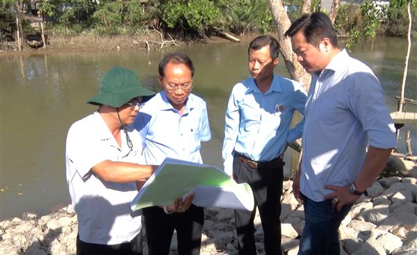 Ông Nguyễn Văn Sử, Giám đốc Sở Nông nghiệp và Phát triển nông thôn TP. Cần Thơ và ông Nguyễn Quí Ninh, Chi cục trưởng Chi cục Thủy lợi TP. Cần Thơ kiểm tra công tác nghiệm thu công trình Kè chống sạt lở khẩn cấp bờ phải Rạch Sung.