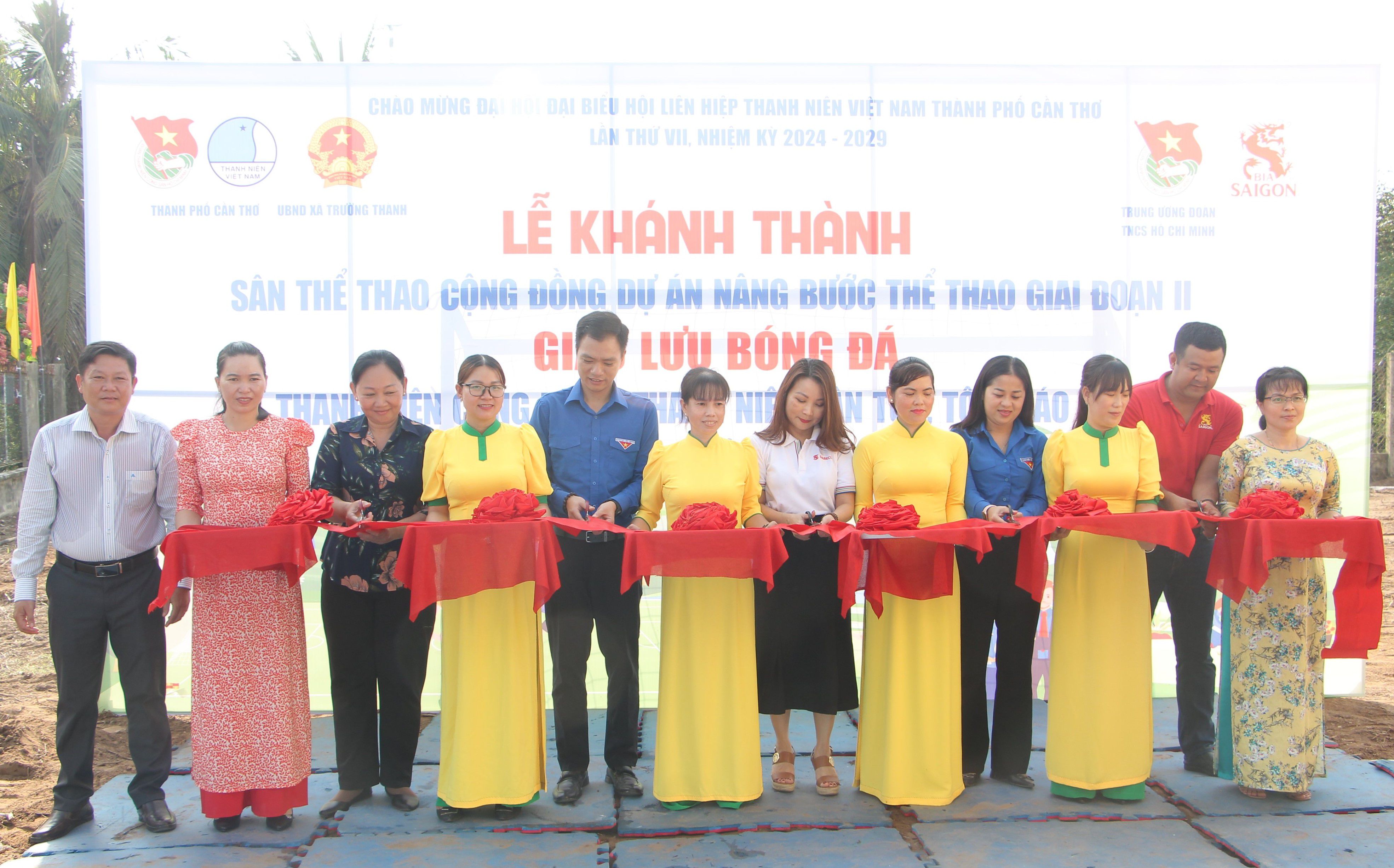 Tại huyện Thới Lai Thành đoàn - Hội LHTN Việt Nam thành phố Cần Thơ phối hợp Ủy ban nhân dân xã Trường Thành, huyện Thới Lai tổ chức Lễ Khánh thành Sân thể thao cộng đồng Dự án Nâng bước thể thao giai đoạn II và chương trình giao lưu bóng đá thanh niên công nhân, thanh niên dân tộc tôn giáo 2024.