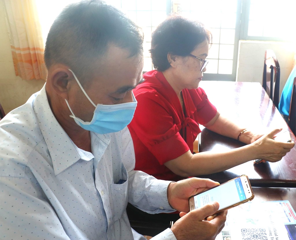 Người dân phường Trà Nóc (quận Bình Thủy) được hướng dẫn sử dụng dịch vụ công trực tuyến. Ảnh: Tú Anh.