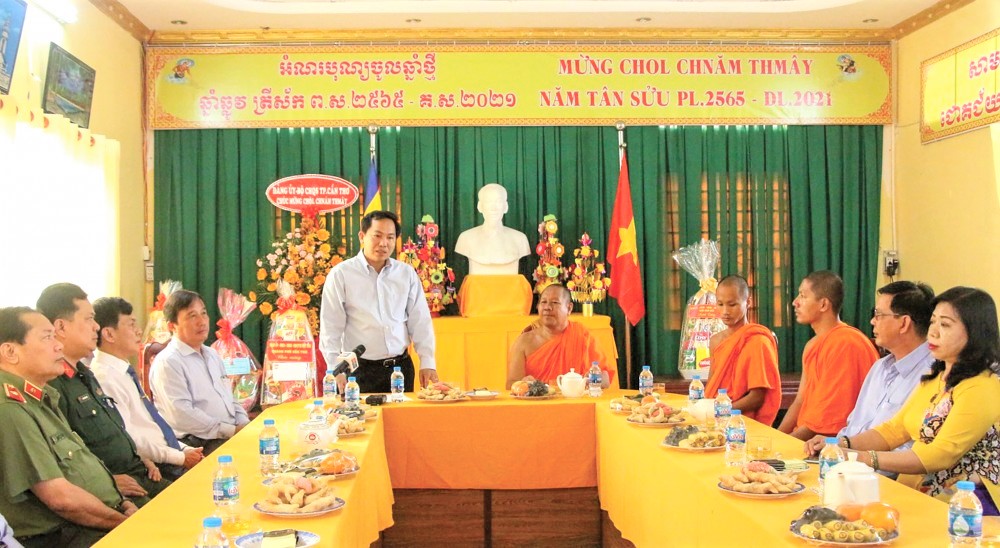 Ngày 09/4/2021, Thành ủy, HĐND, UBND, Ủy ban MTTQVN TP Cần Thơ tổ chức các đoàn đến chúc mừng, tặng quà quý vị chức sắc, Sư sãi, Achar, Ban Quản trị các chùa, đồng bào dân tộc Khmer nhân dịp Tết Cổ truyền Chôl Chnăm Thmây năm 2021.