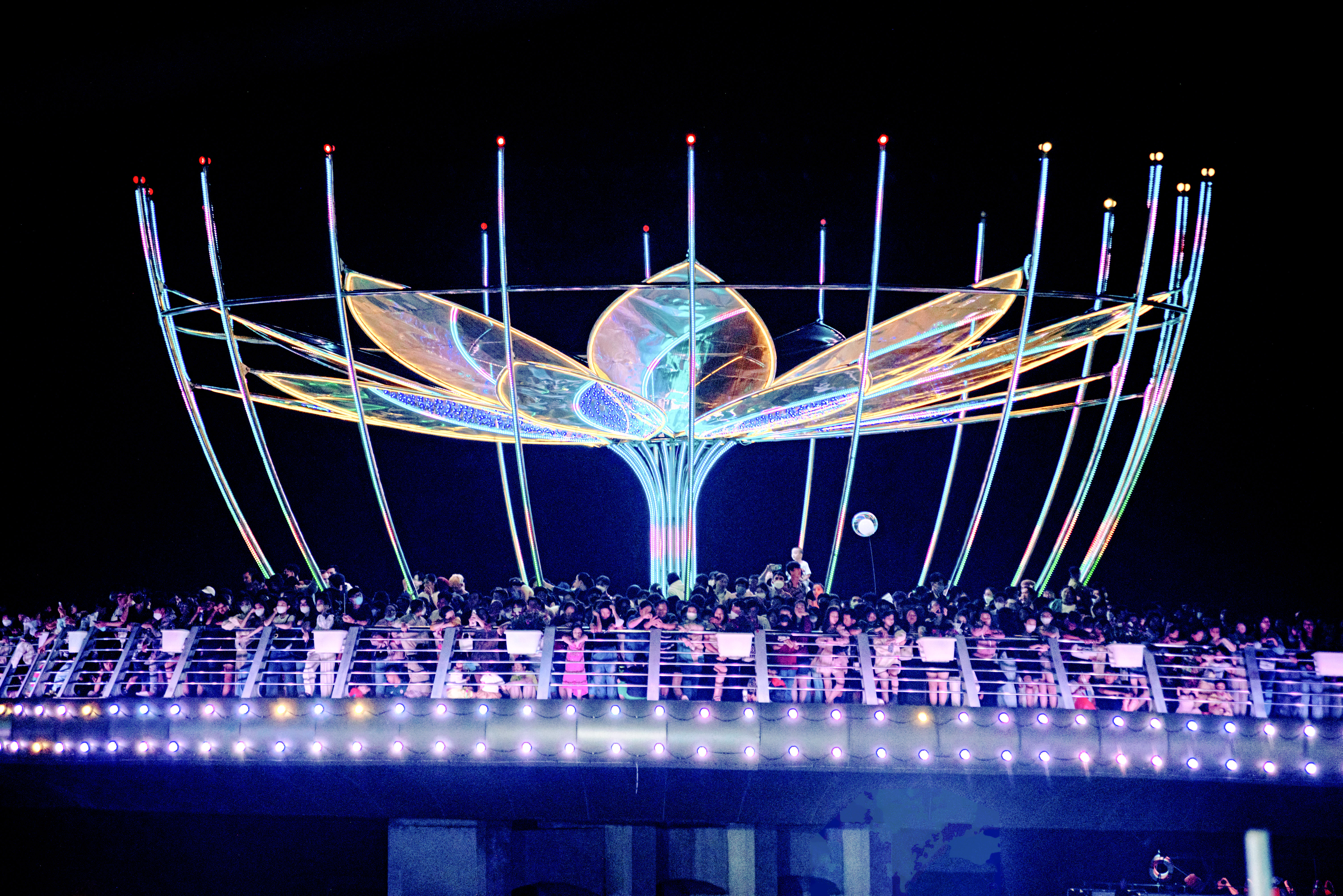 Hàng ngàn người dân đứng trên cầu đi bộ Ninh Kiều chờ xem chương trình.