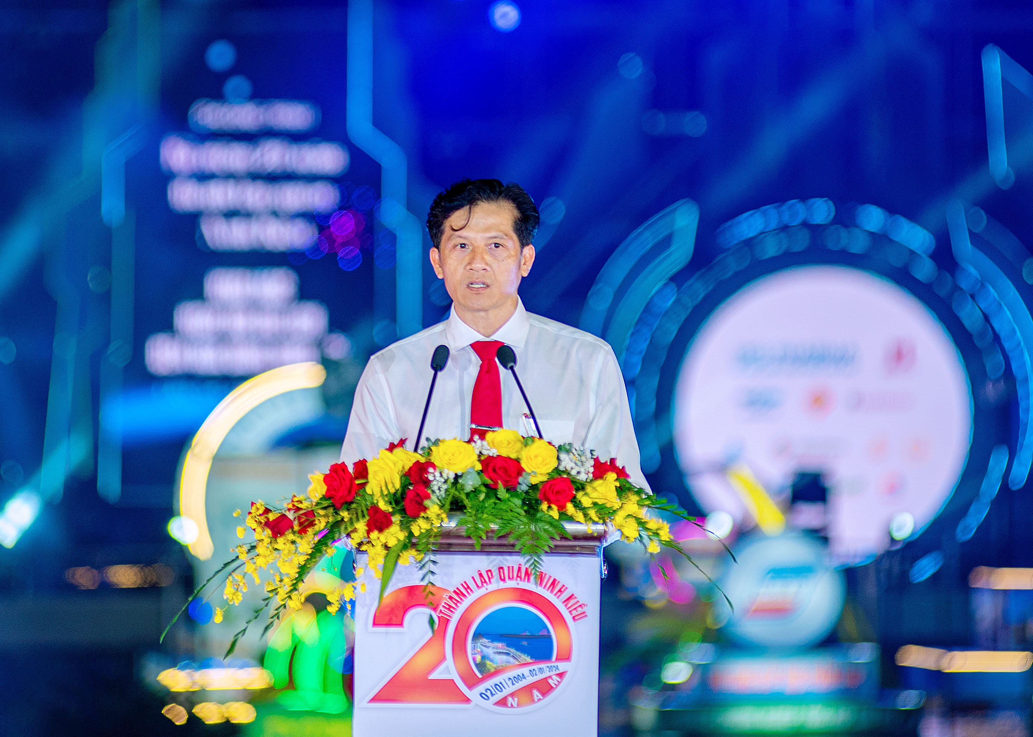 Đồng chí Huỳnh Trung Trứ, Phó Bí thư Quận ủy, Chủ tịch UBND quận Ninh Kiều, TP Cần Thơ phát biểu tại lễ khai mạc ngày hội.