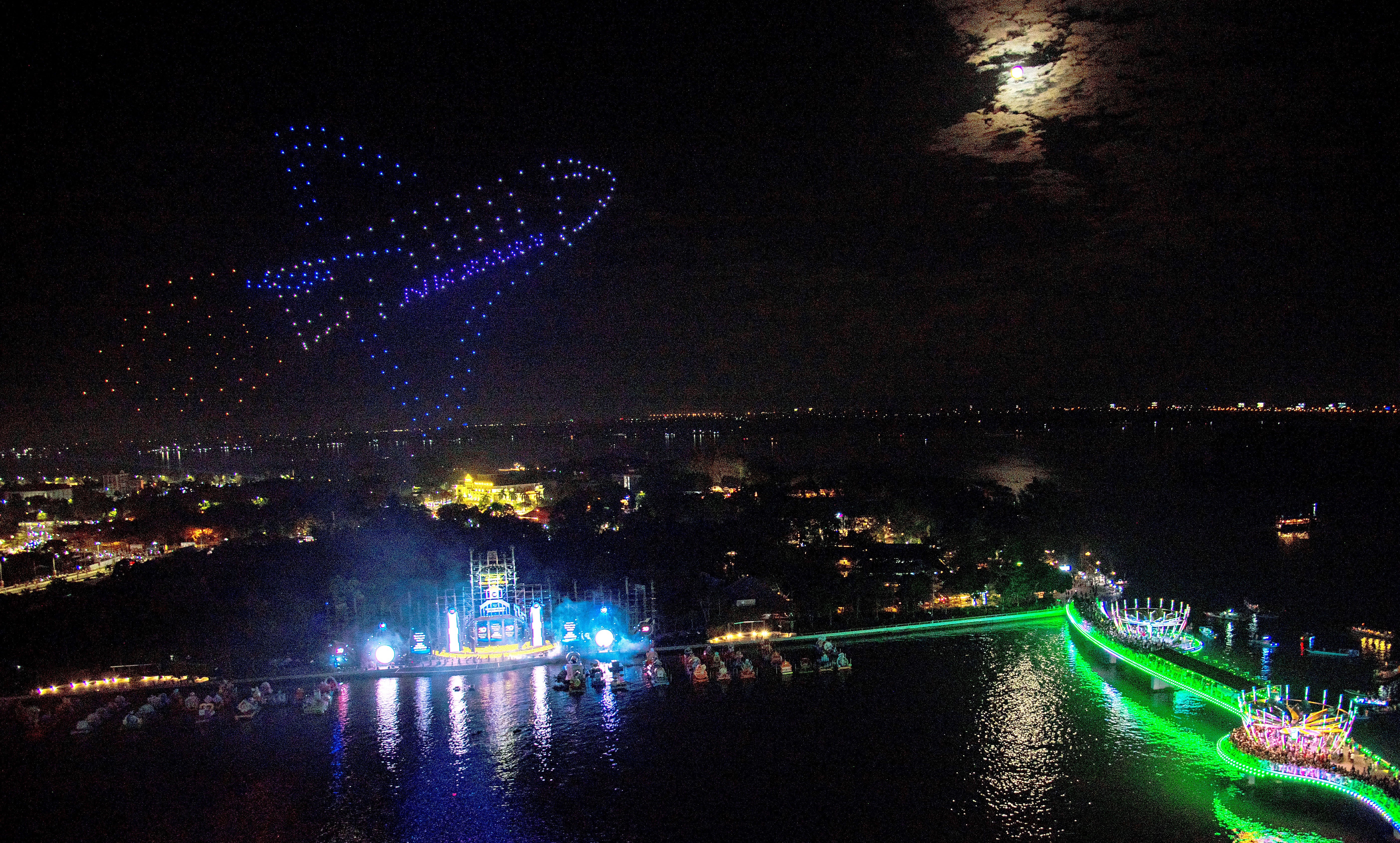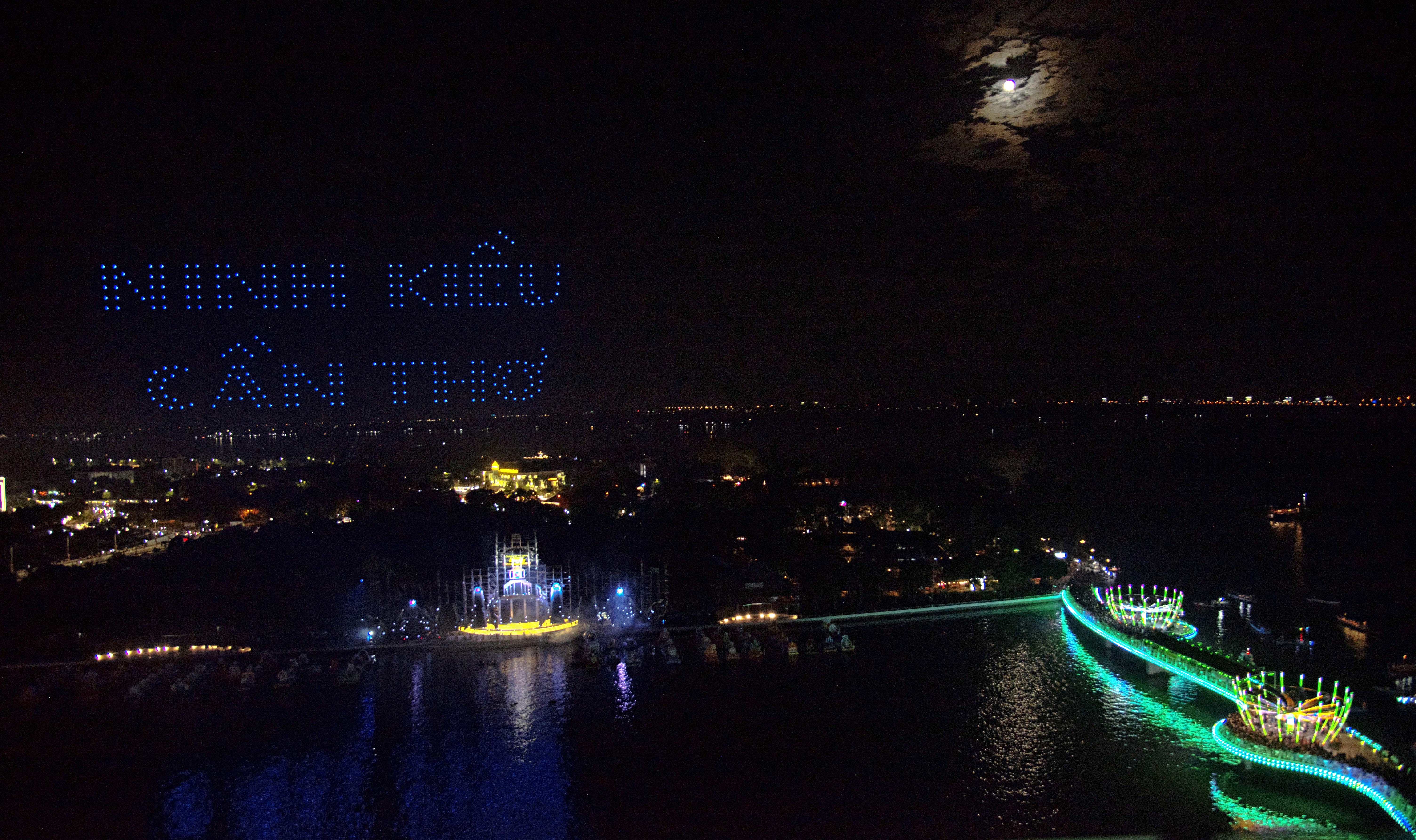 Một số hình ảnh lần đầu tiên Ngày hội diễn ra với sân khấu nổi trên mặt nước và trình diễn Drone Light với chủ đề “Thành tựu 20 năm xây dựng và phát triển quận Ninh Kiều”.