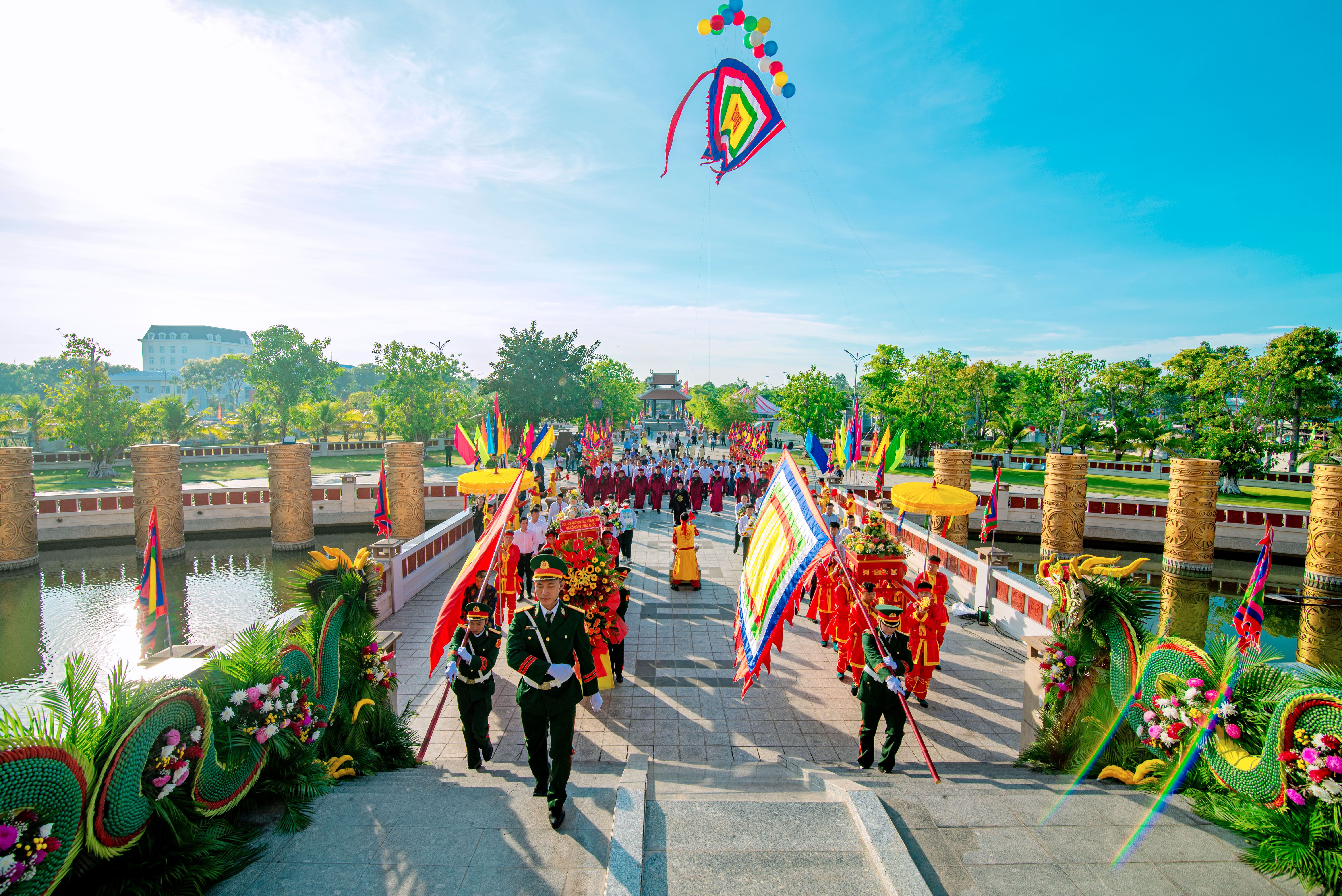Trước lễ dâng hương, đồng chí Nguyễn Thực Hiện, Thành ủy viên, Phó Chủ tịch UBND TP Cần Thơ đã phát hiệu lệnh thả lá Đại kỳ có diện tích 18x18m, trung tâm nổi bật với hai chữ "Hùng Vương".