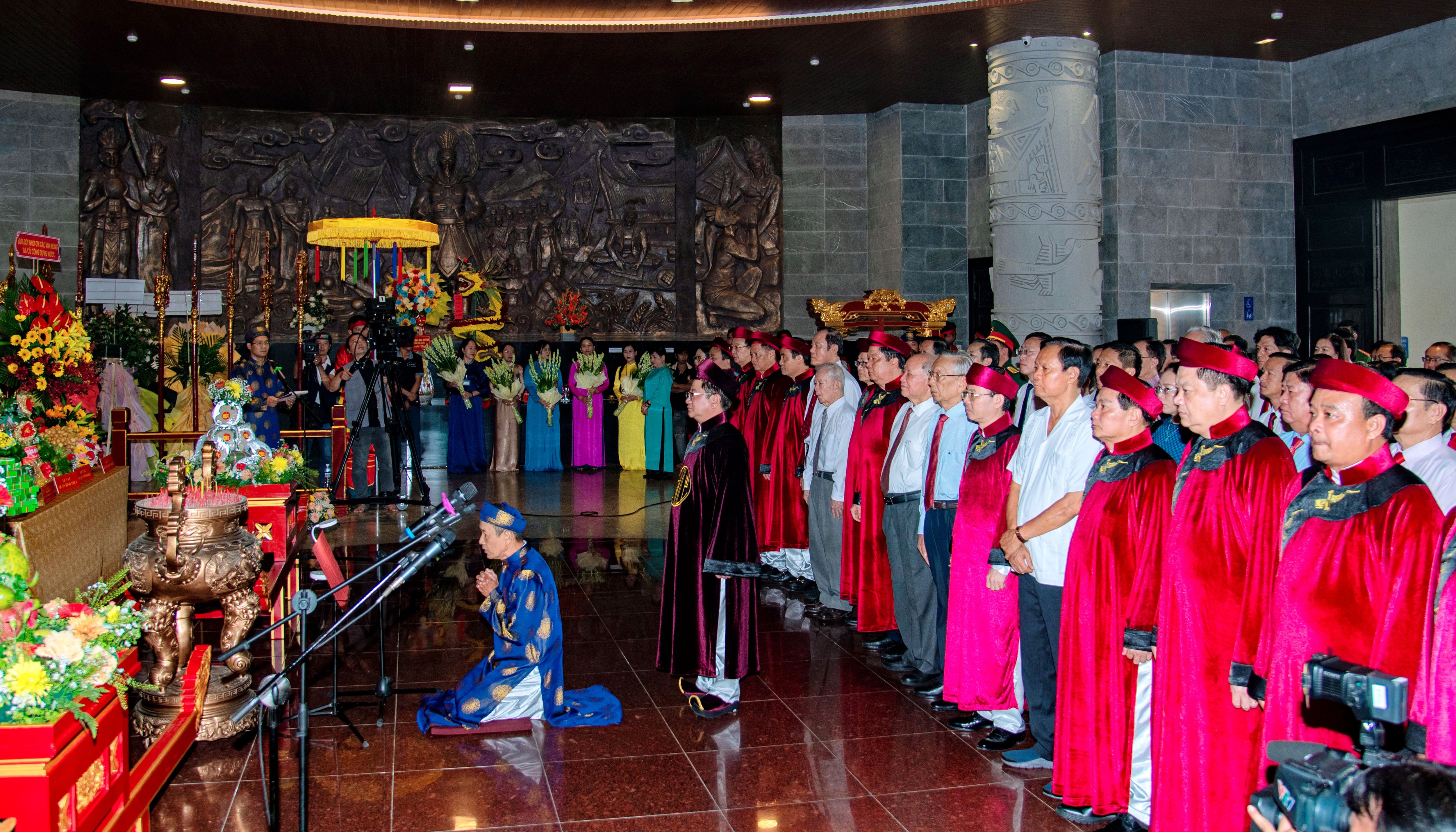 Các đại biểu trang nghiêm trước Điện thờ, cử hành các nghi thức Giỗ Tổ Hùng Vương.