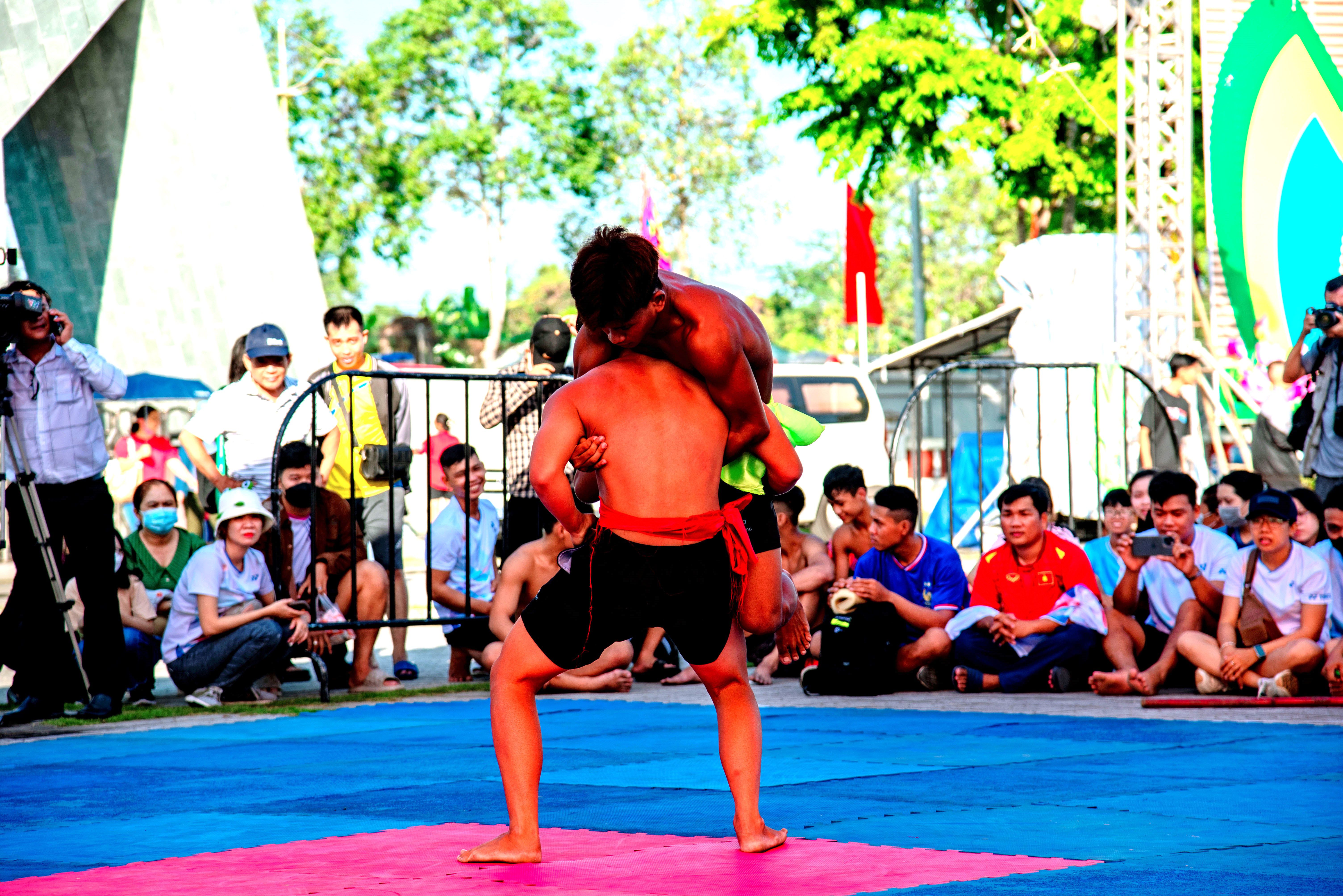 Thi đấu vật tại Đền thờ Vua Hùng TP Cần Thơ.