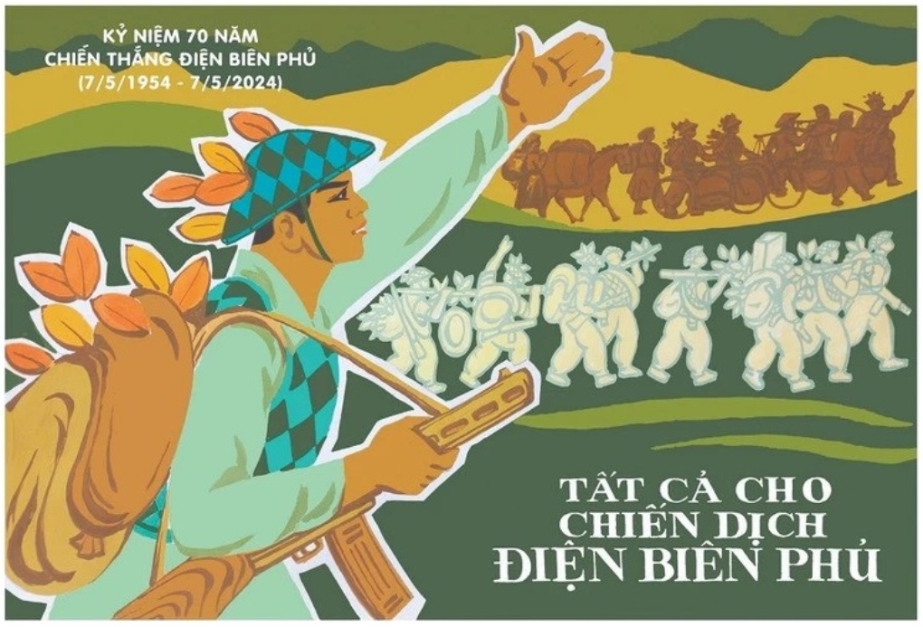 Tác phẩm "Tất cả cho chiến dịch Điện Biên Phủ", tác giả Đỗ Như Điềm (Thái Bình) - Giải Nhất cuộc thi sáng tác tranh cổ động tuyên truyền 70 năm Chiến thắng Điện Biên Phủ do Cục Văn hóa cơ sở, Bộ Văn hóa, Thể thao và Du lịch tổ chức.